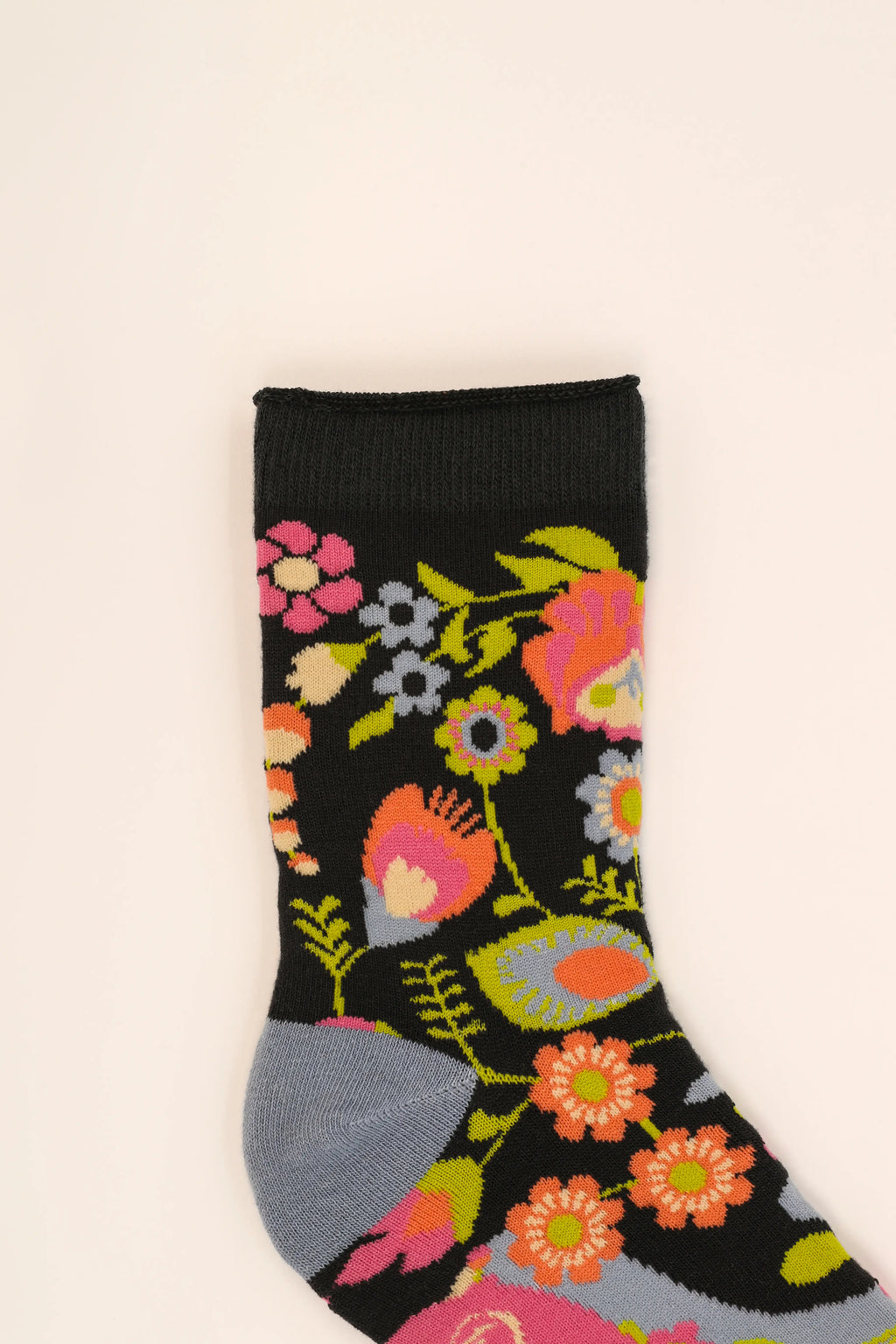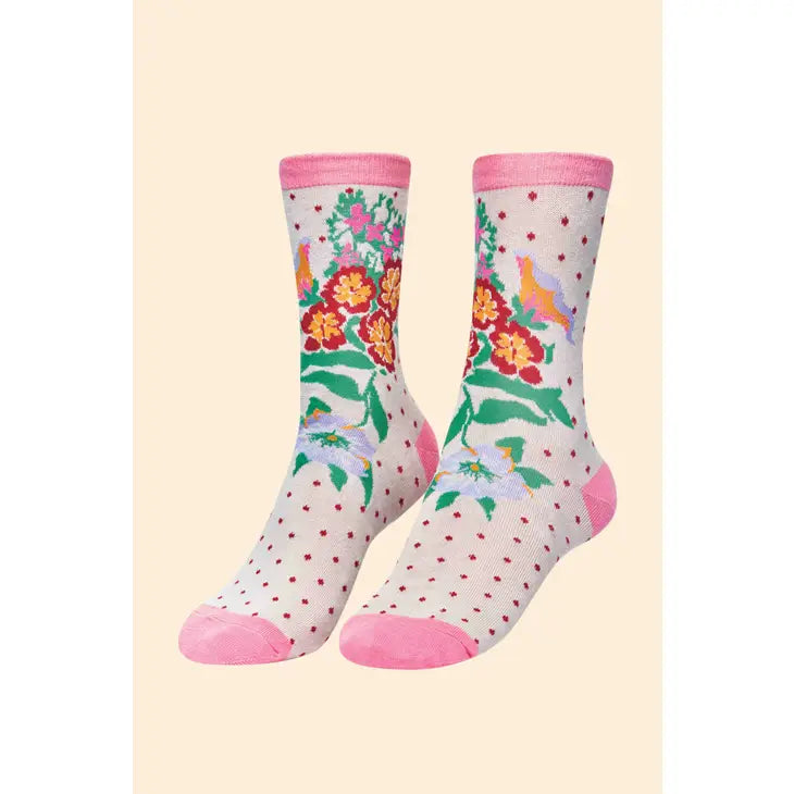 FLORAL SPRAY ANKLE SOCKS-ICE-POWDER