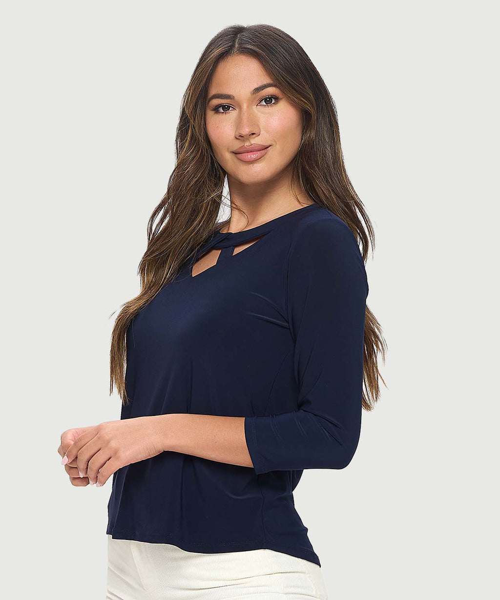 3/4 SLEEVE TUCK TEE-PEACOCK-CUT LOOSE