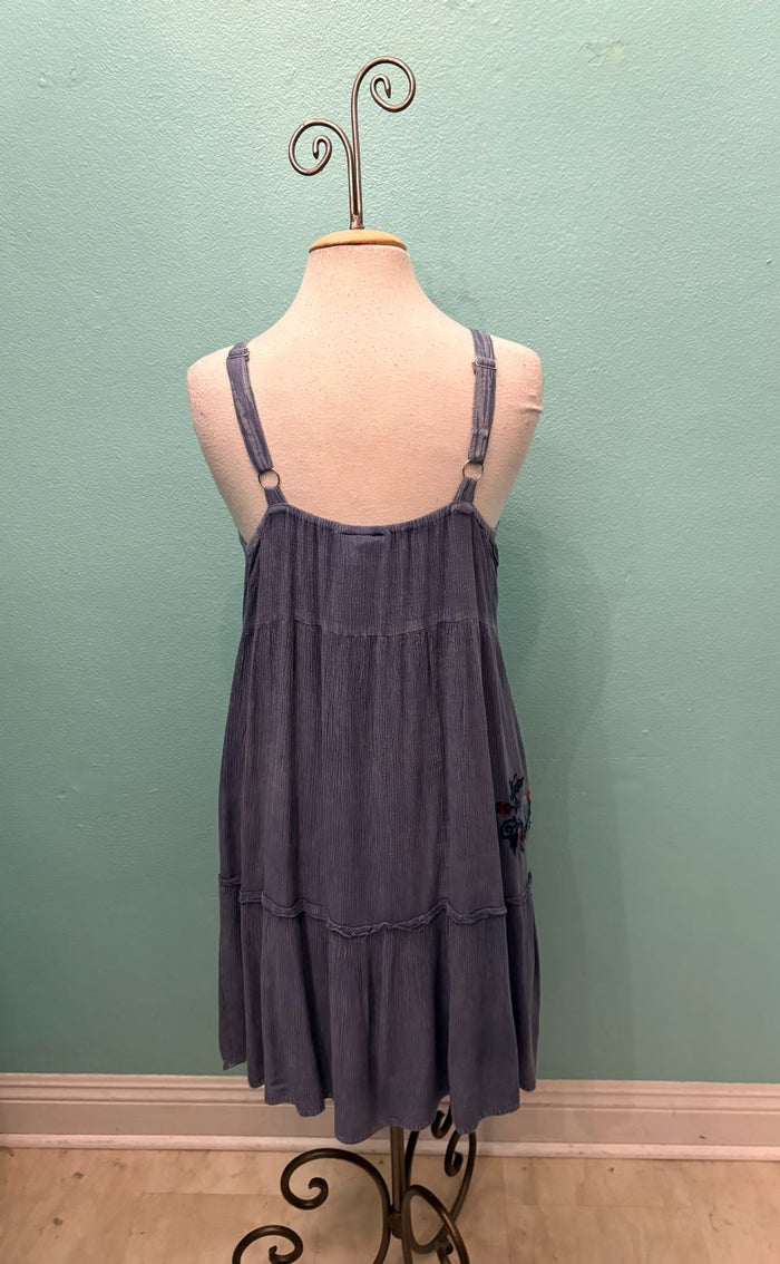 BLUE CRINKLE TANK DRESS W/STITCH PANELS-SHANA