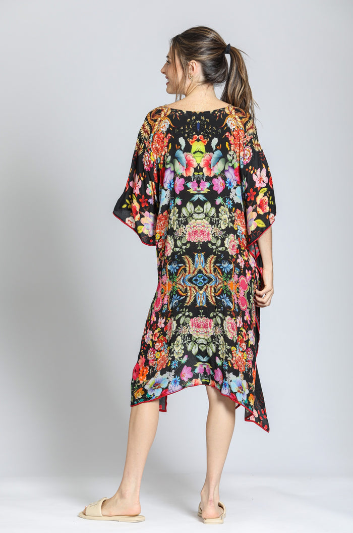 GARDEN VIOLA 3/4 SILK EMBROIDED BLOUSE-ONE SIZE-TEES BY TINA