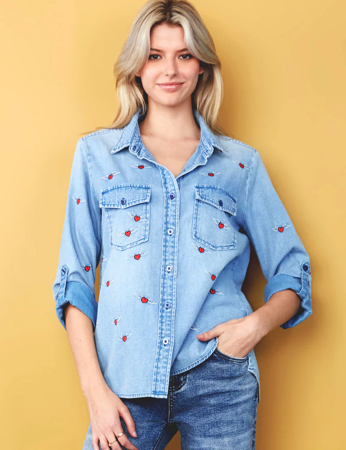 JULIETTE BUTTON DOWN SHIRT W/ 3/4 SLV CUFF-JESS AND JANE