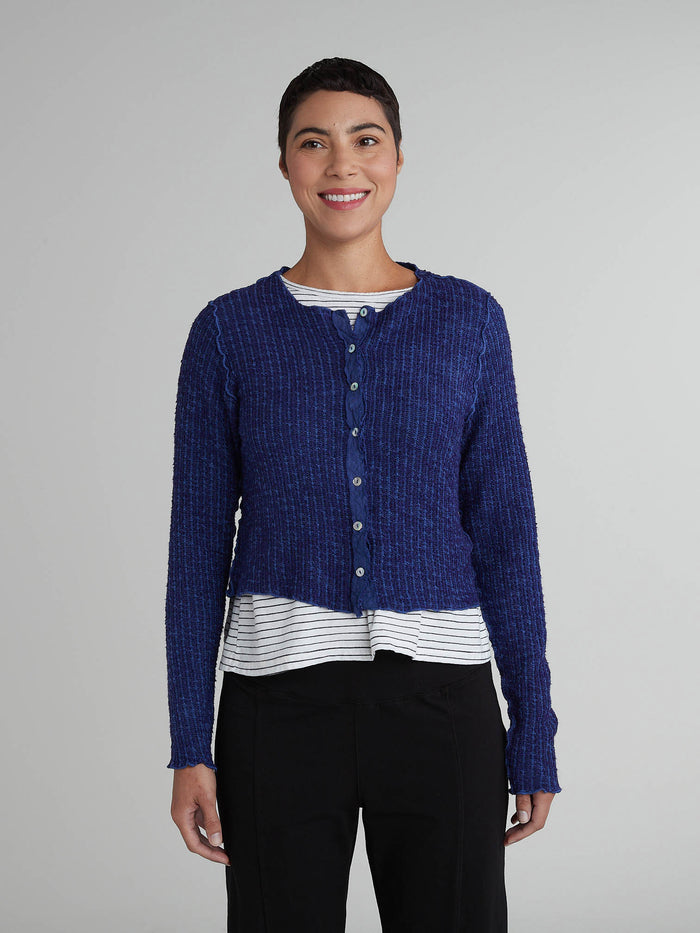 CROP POCKET CARDIGAN W/VELVET DETAIL-BLACK-CUT LOOSE
