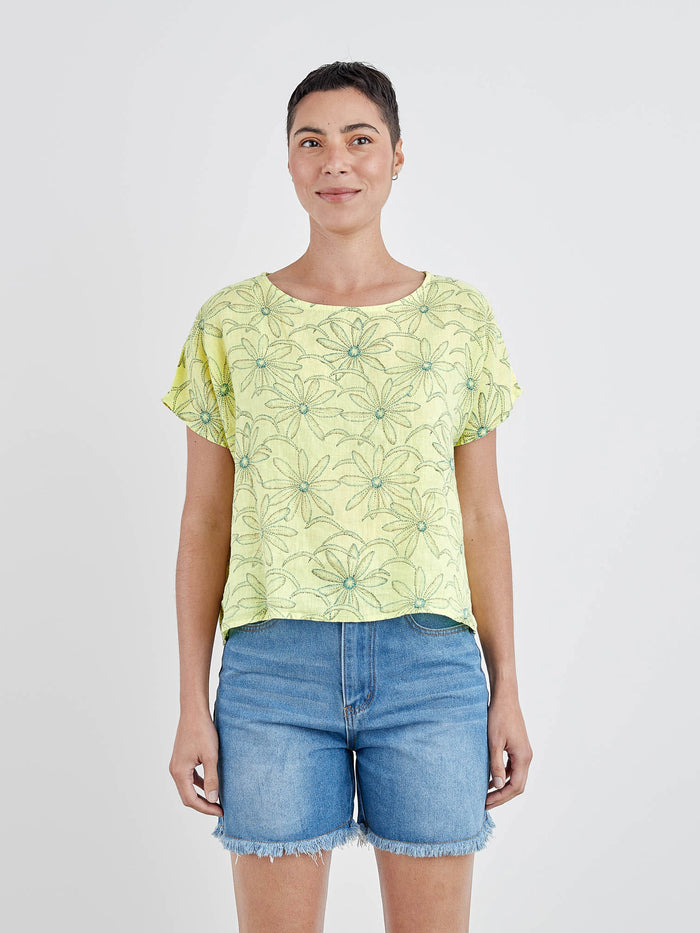 DAISY CAP SLEEVE HI LO TOP-SUNBURST-CUT LOOSE
