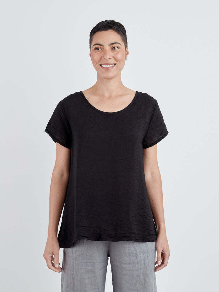 3/4 SLEEVE TUCK FRONT TEE-BLACK-CUT LOOSE