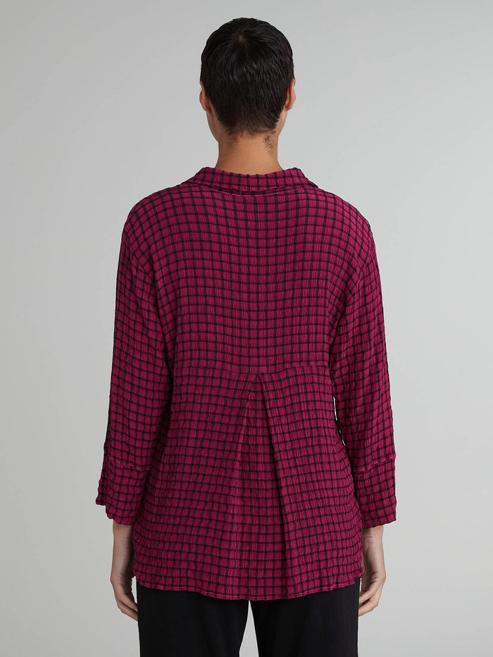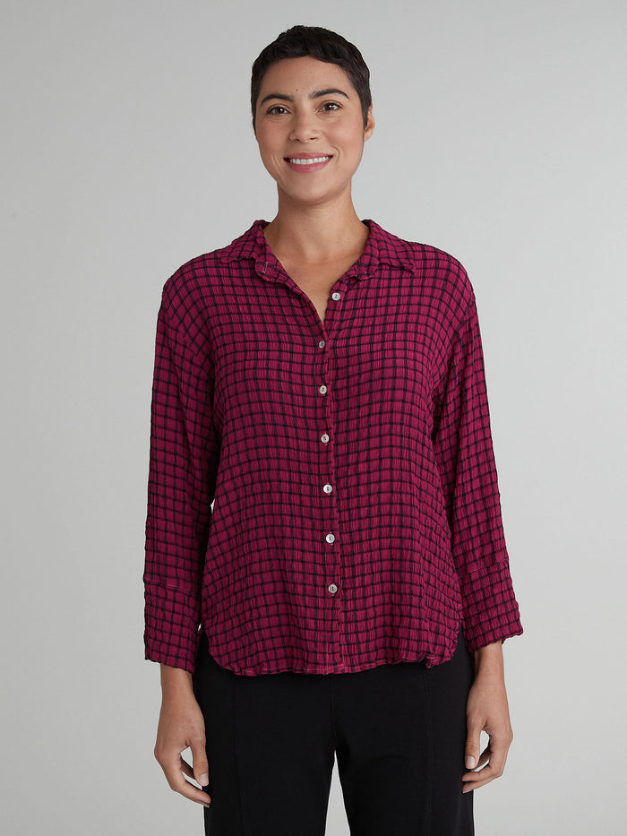 EASY CROP SHIRT CRINKLE CHECK-SOLAR-CUT LOOSE