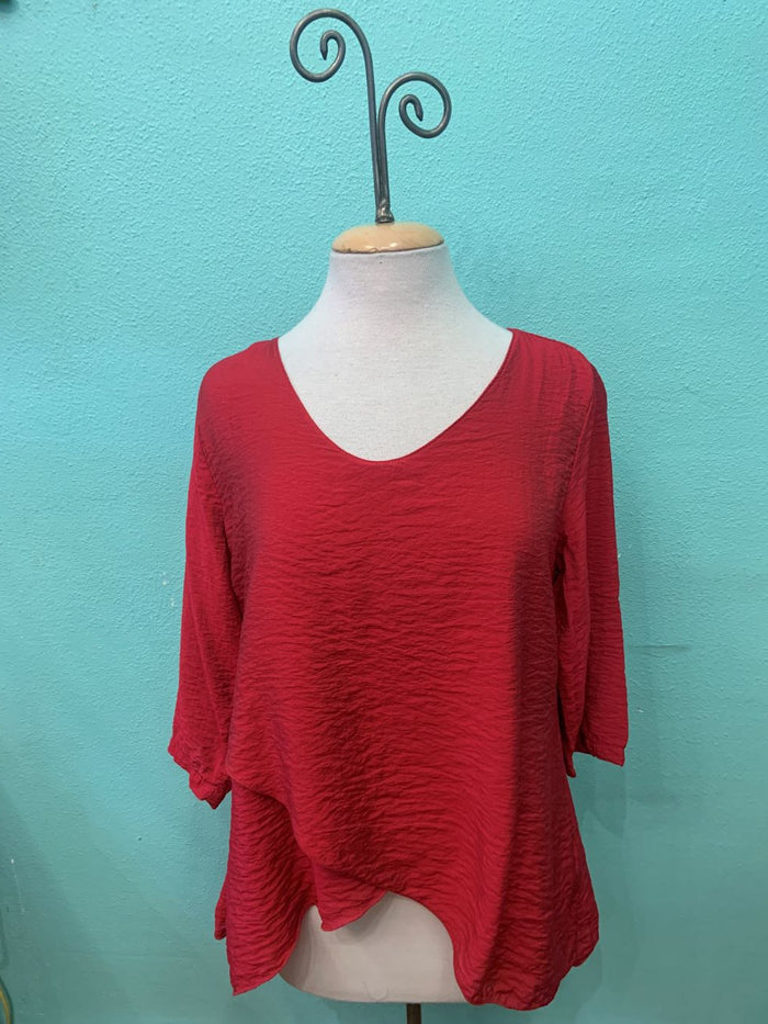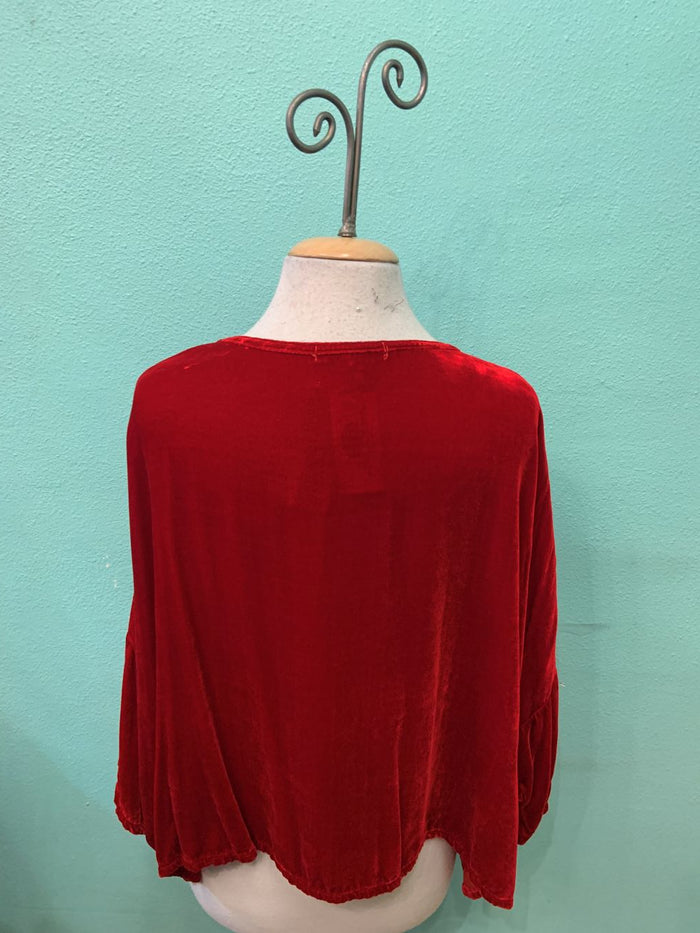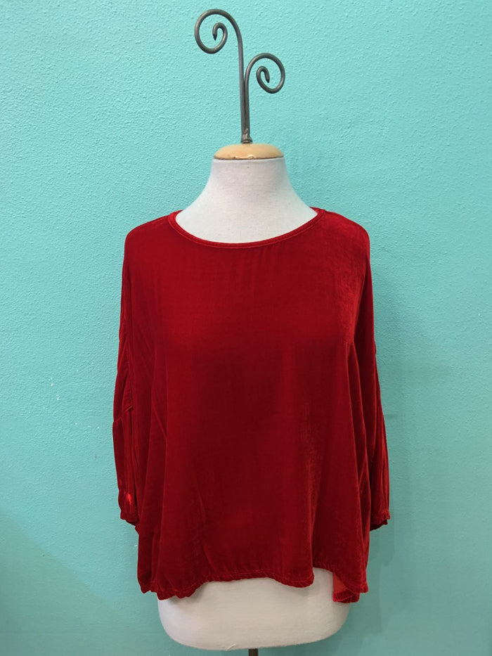 VELVET 3/4 SLEEVE A-LINE TOP-BLACK-CUT LOOSE