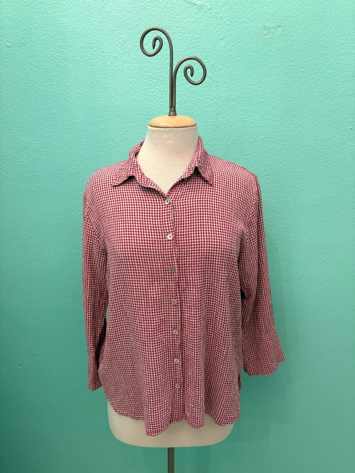 EASY CROP SHIRT CRINKLE CHECK-CASHEW-CUT LOOSE