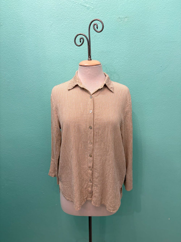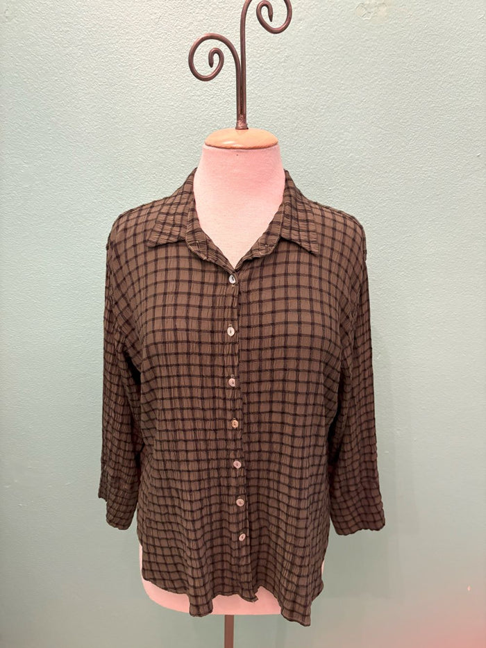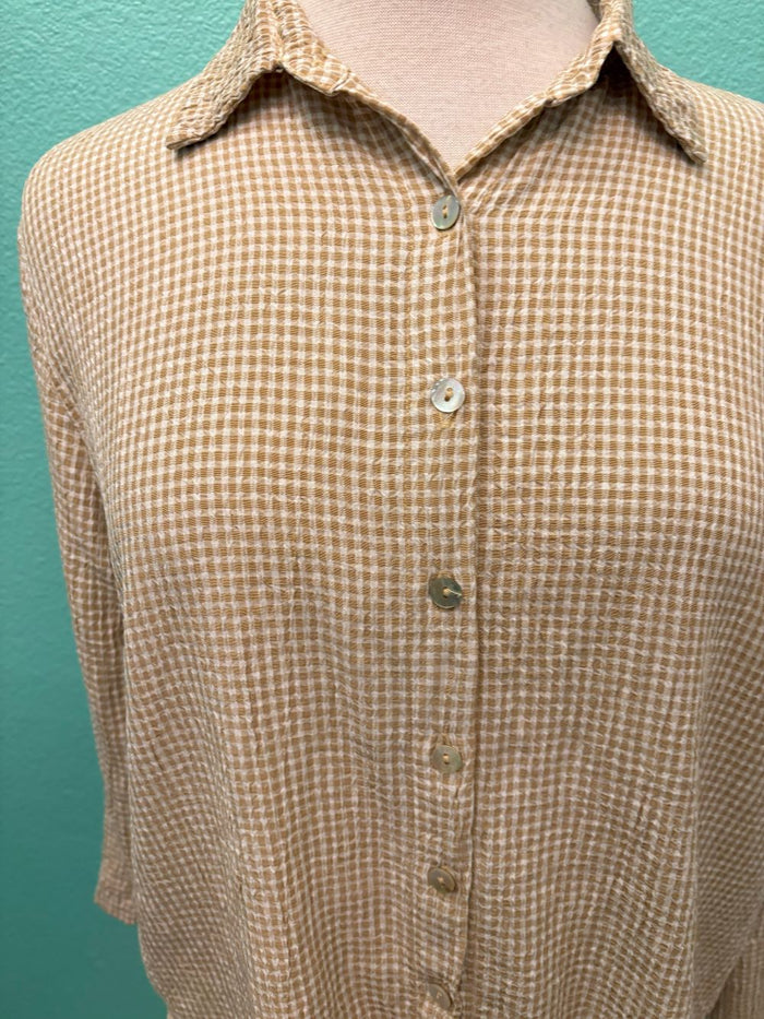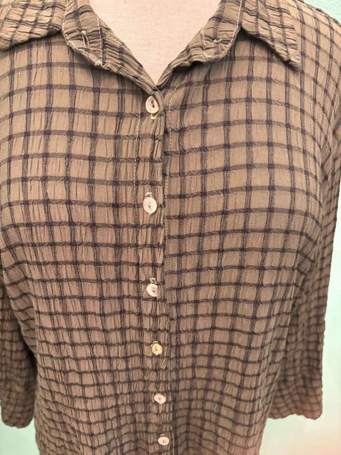 EASY CROP SHIRT CRINKLE CHECK-JICAMA-CUT LOOSE