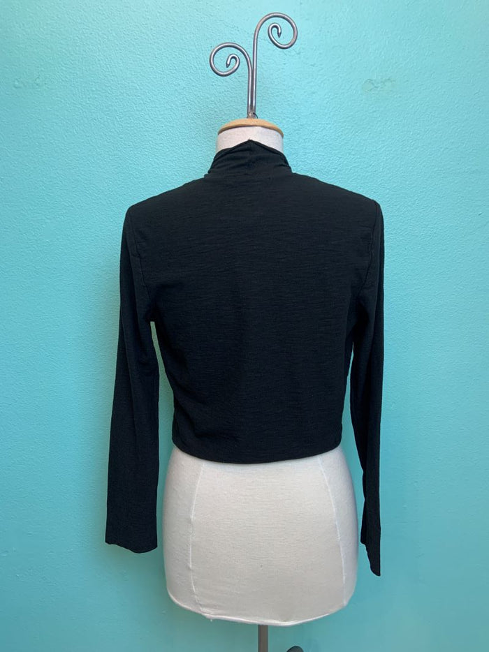 TULLE MESH CROP CARDIGAN-BLACK-CUT LOOSE