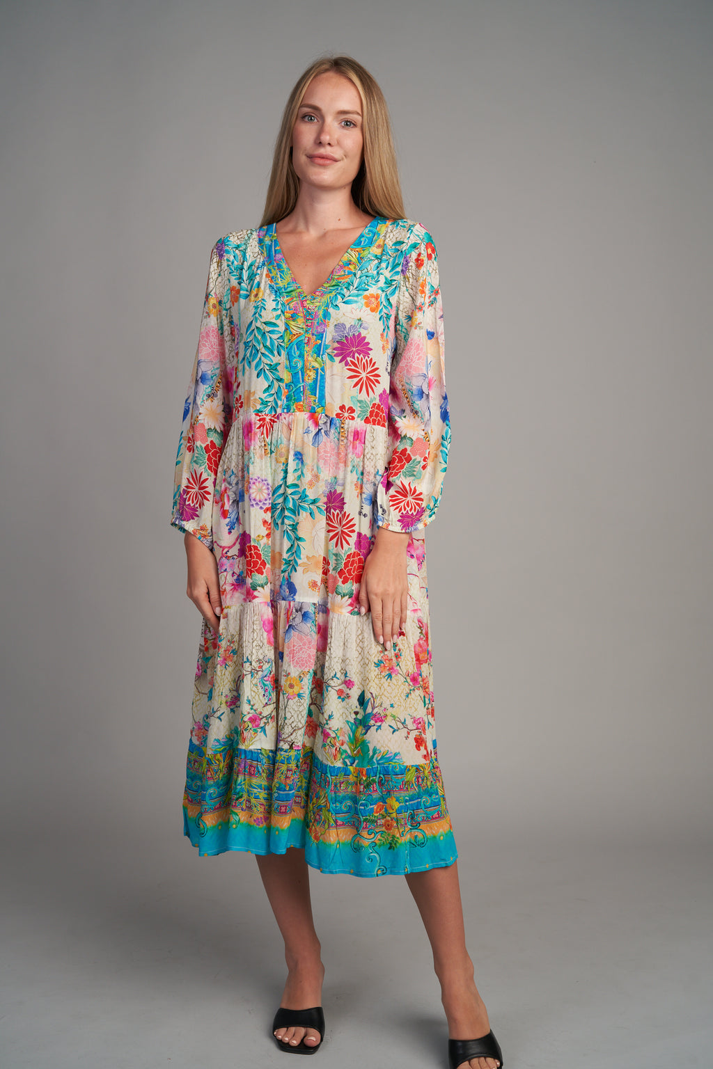 JUNGLE GREY PRINT LONG TIER DRESS-APNY