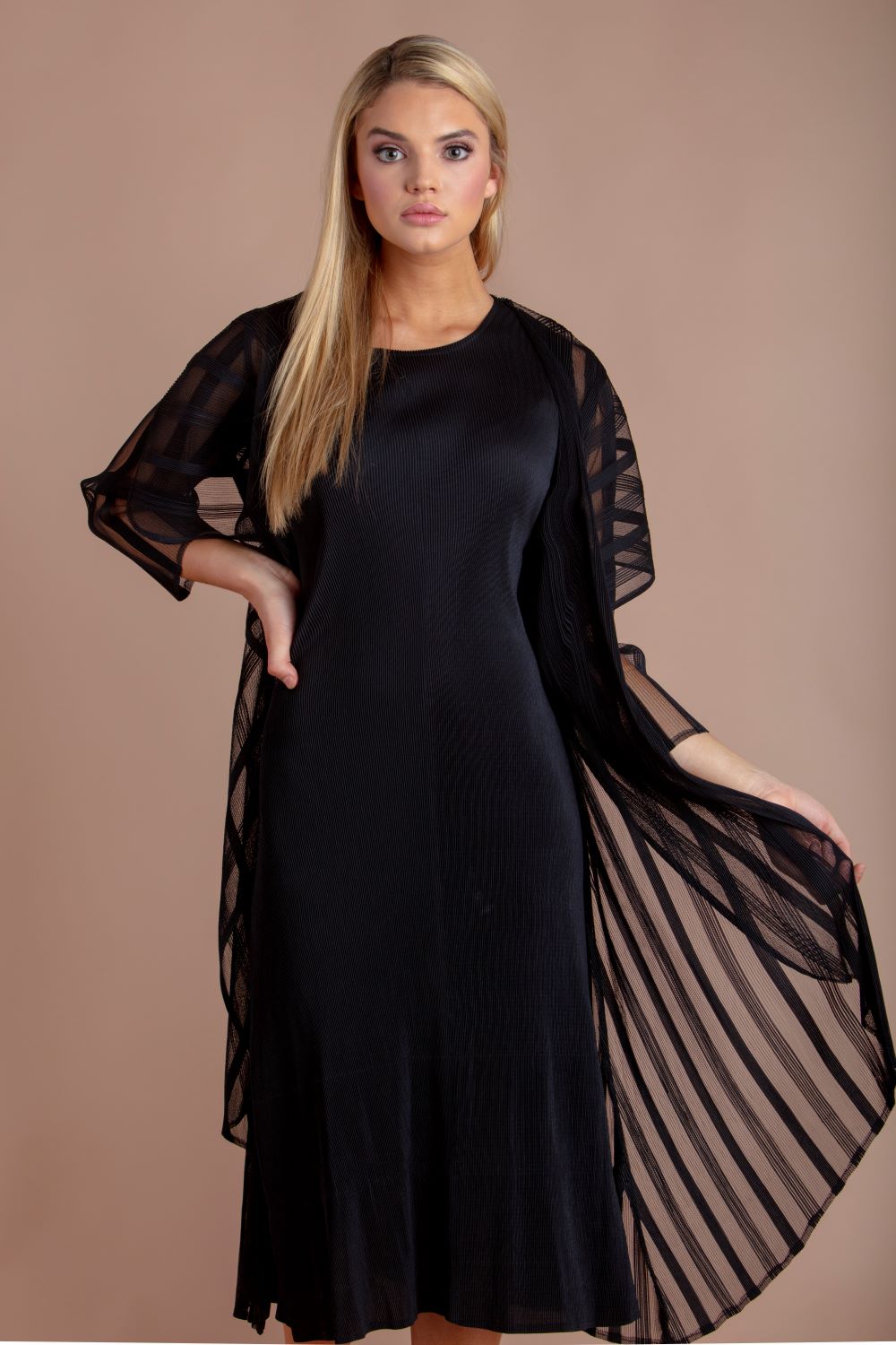 LONG DRESS W/COLLAR JACKET 2-PIECE - BLACK - JOURNEY