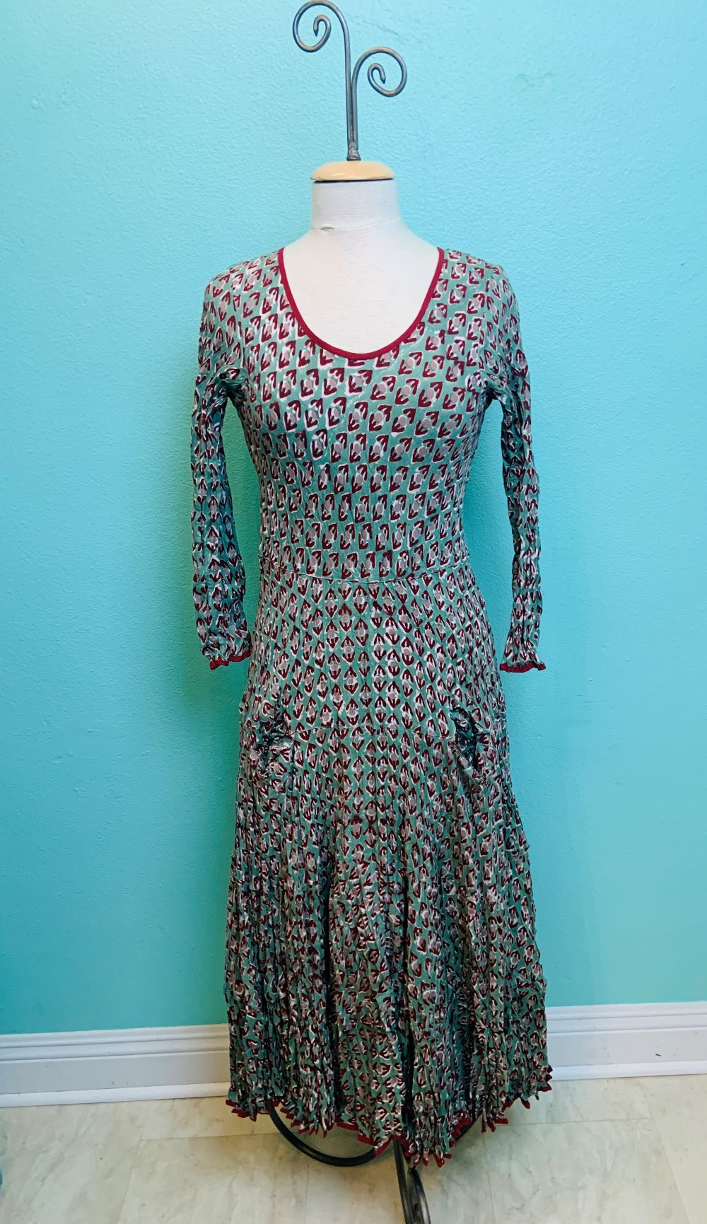 LONG SLEEVE CRINKLE DRESS-VANITE COUTURE