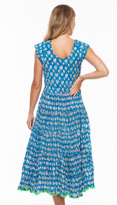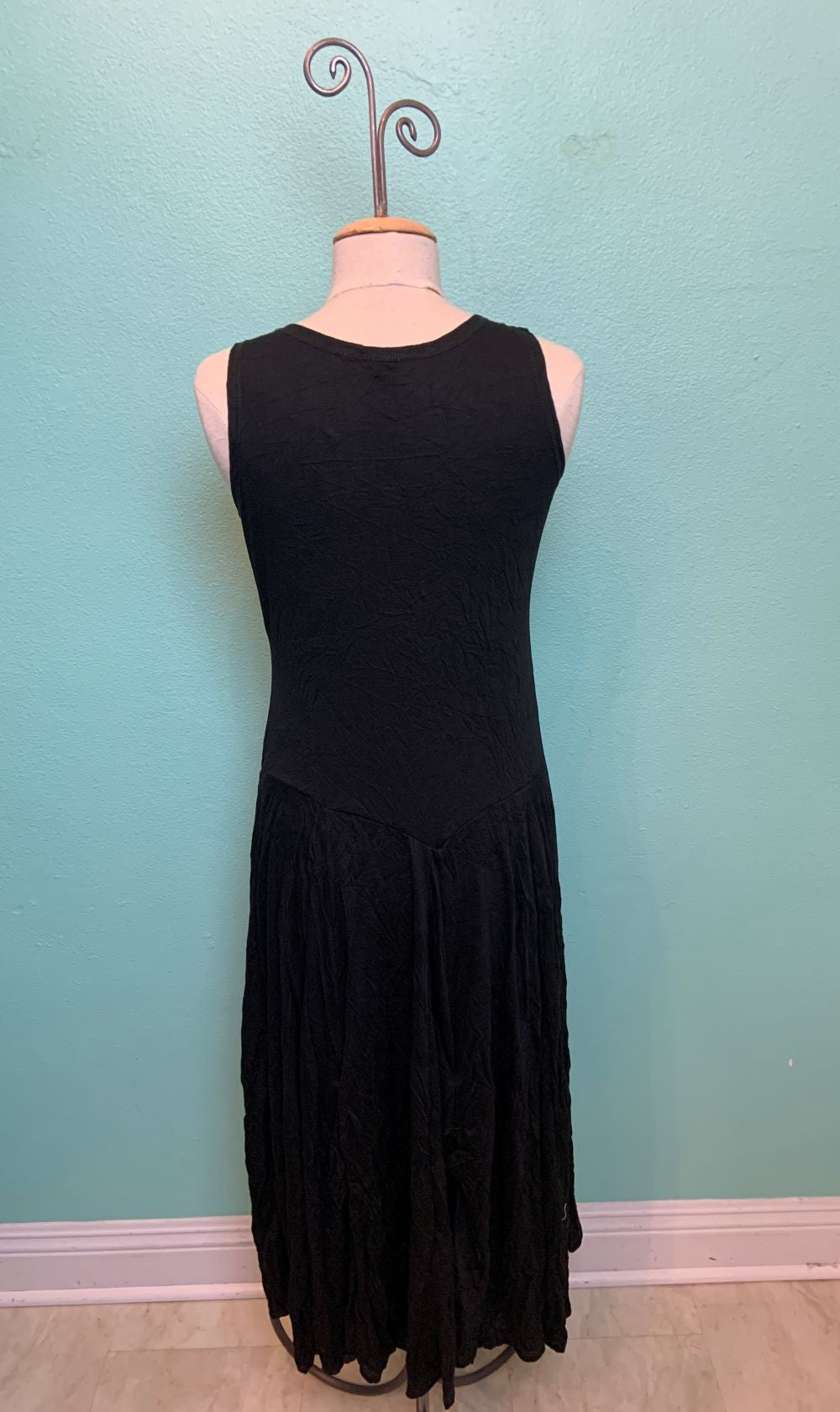 BLUE CRINKLE TANK DRESS W/STITCH PANELS-SHANA