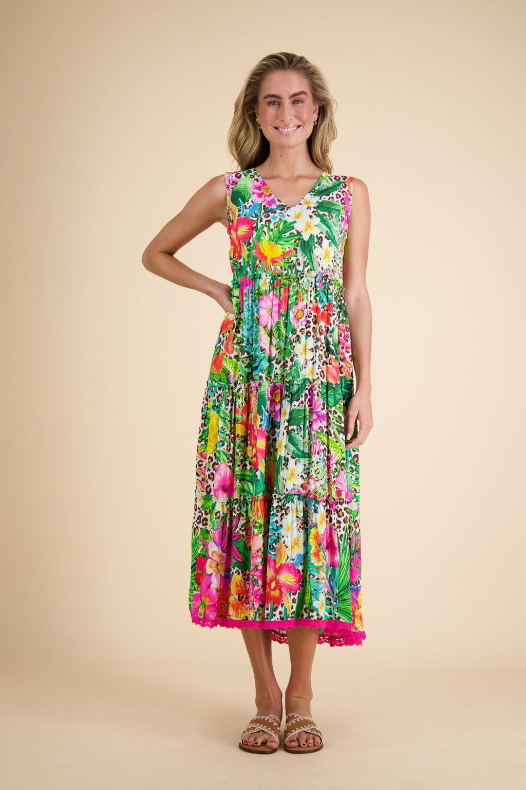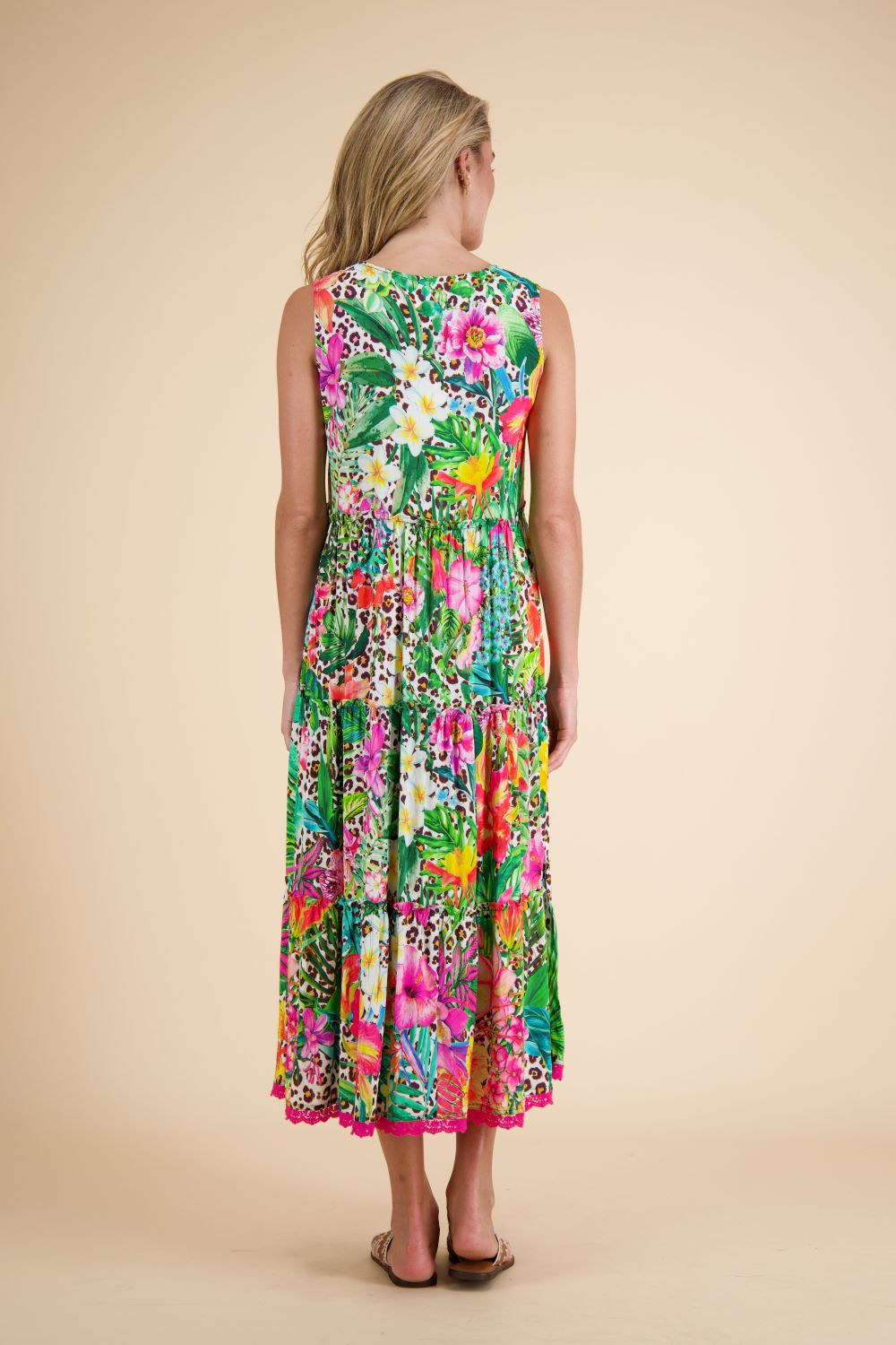 PRINT SLEEVELESS HIGH LO DRESS-SAFARI-TRIBAL