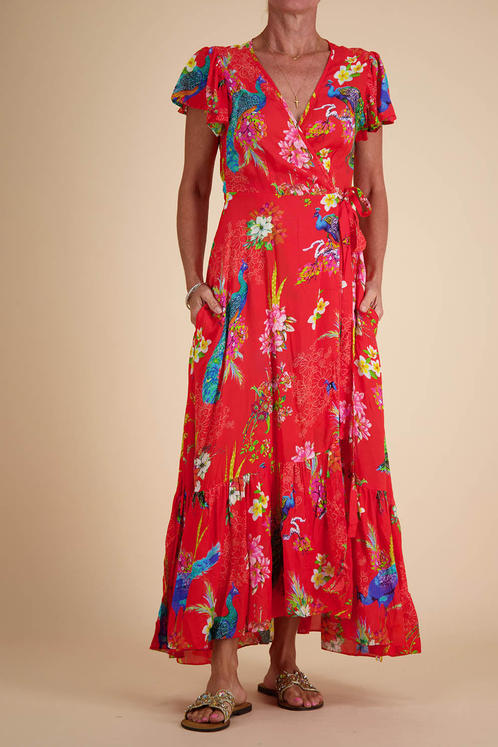 FEMME PLISSE V-NECK MAXI DRESS-TRIBAL