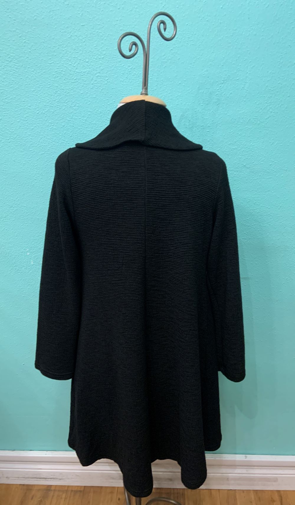DOUBLE KNIT COLLAR SWEATER CARDIGAN-BLACK-TRIBAL