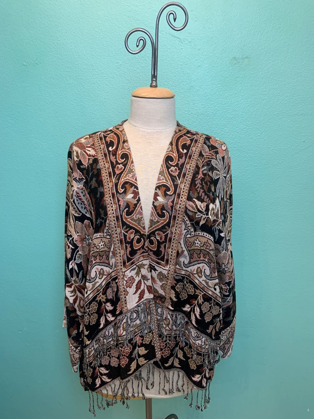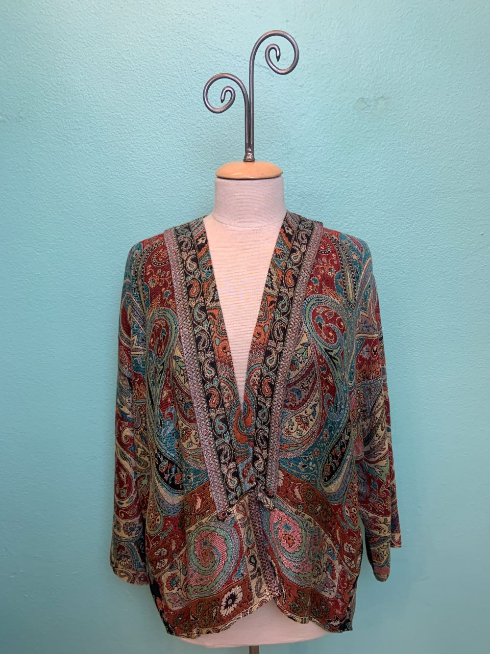 COTTON VELVET JACKET-BROWN/TEAL-PAPER LACE