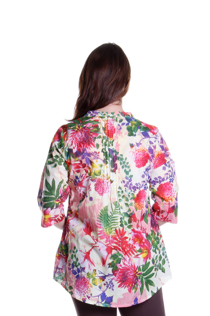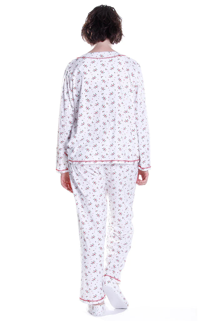 AQUA FLORAL FLANNEL PAJAMA SET - LA CERA