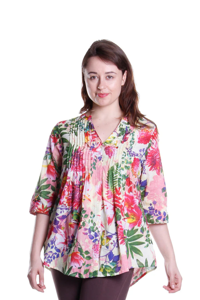 3/4 SLEEVE V-NECK COMFORT COLLECTION-DENIM- LA CERA