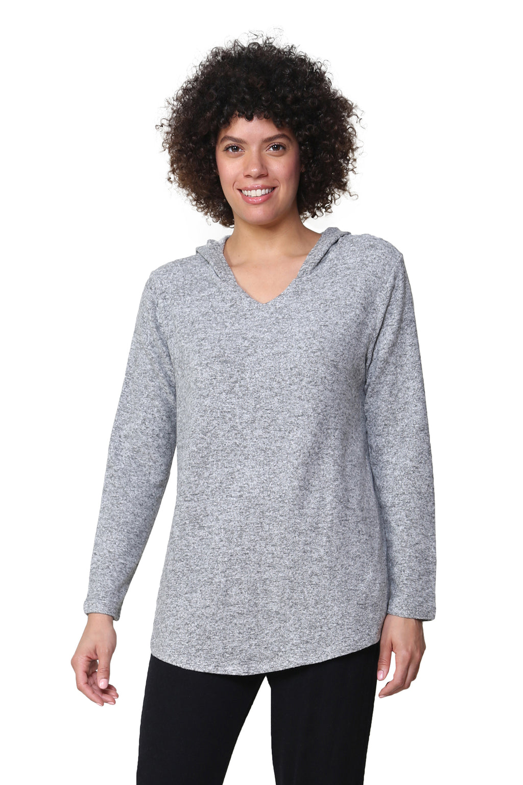COZY HOODIE PULL-OVER W/POCKETS-HEATHER GREY-LA CERA