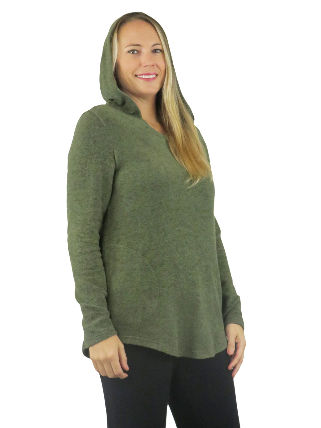 COZY HOODIE PULL-OVER W/POCKETS-HEATHER MOSS-LA CERA