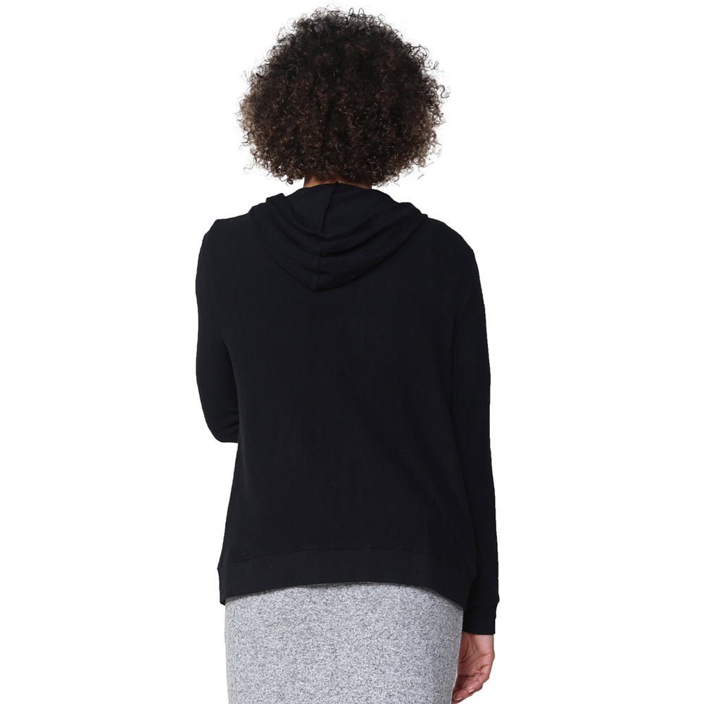 COZY HOODIE PULL-OVER W/POCKETS-BLACK-LA CERA