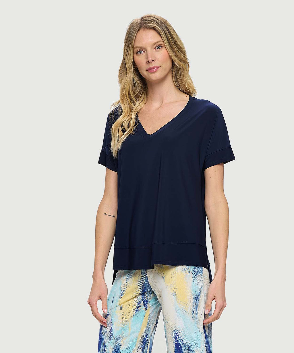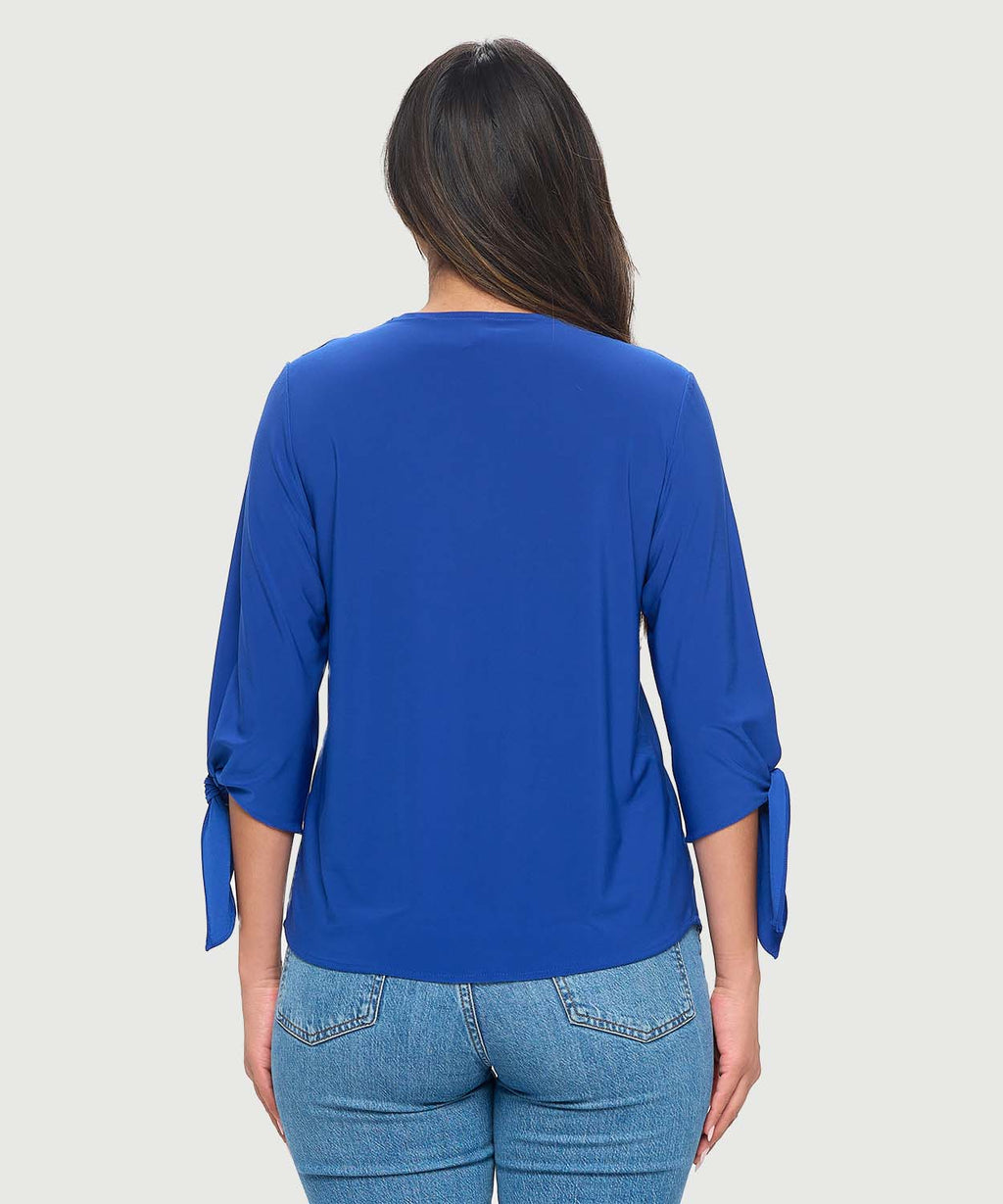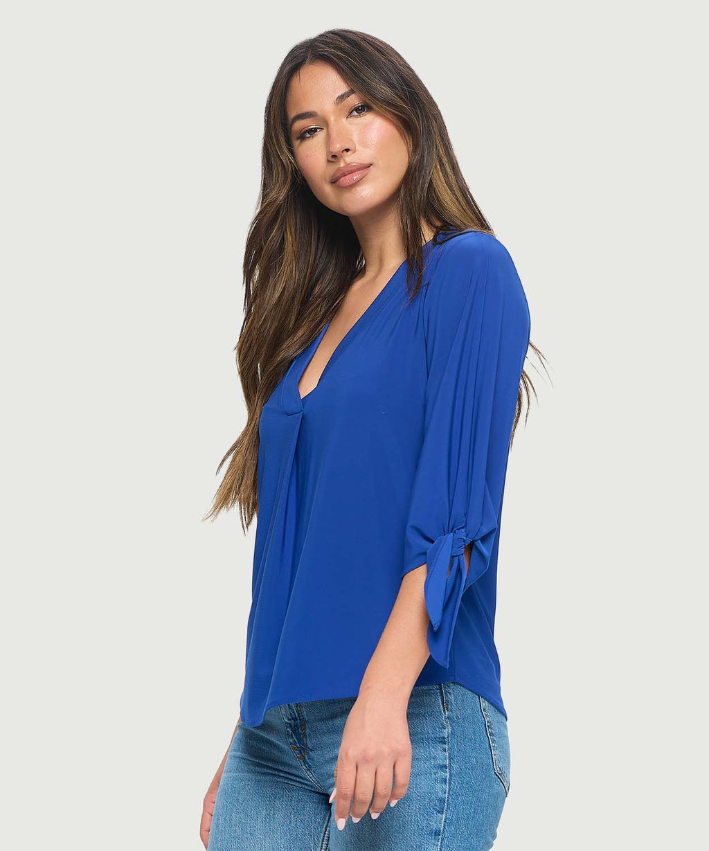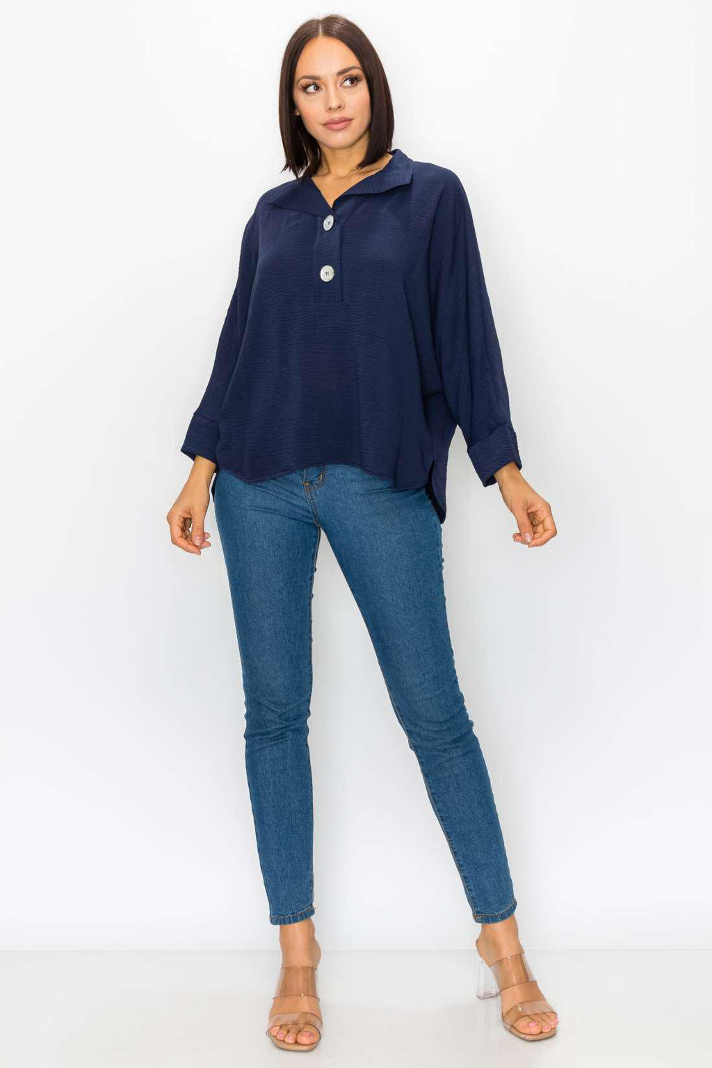 V-NECK PLEATED 3/4 SLEEVE TOP-NAVY-LAST TANGO