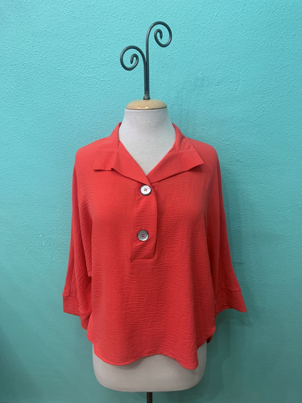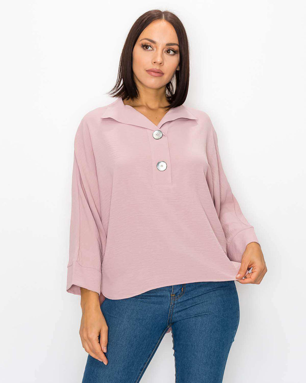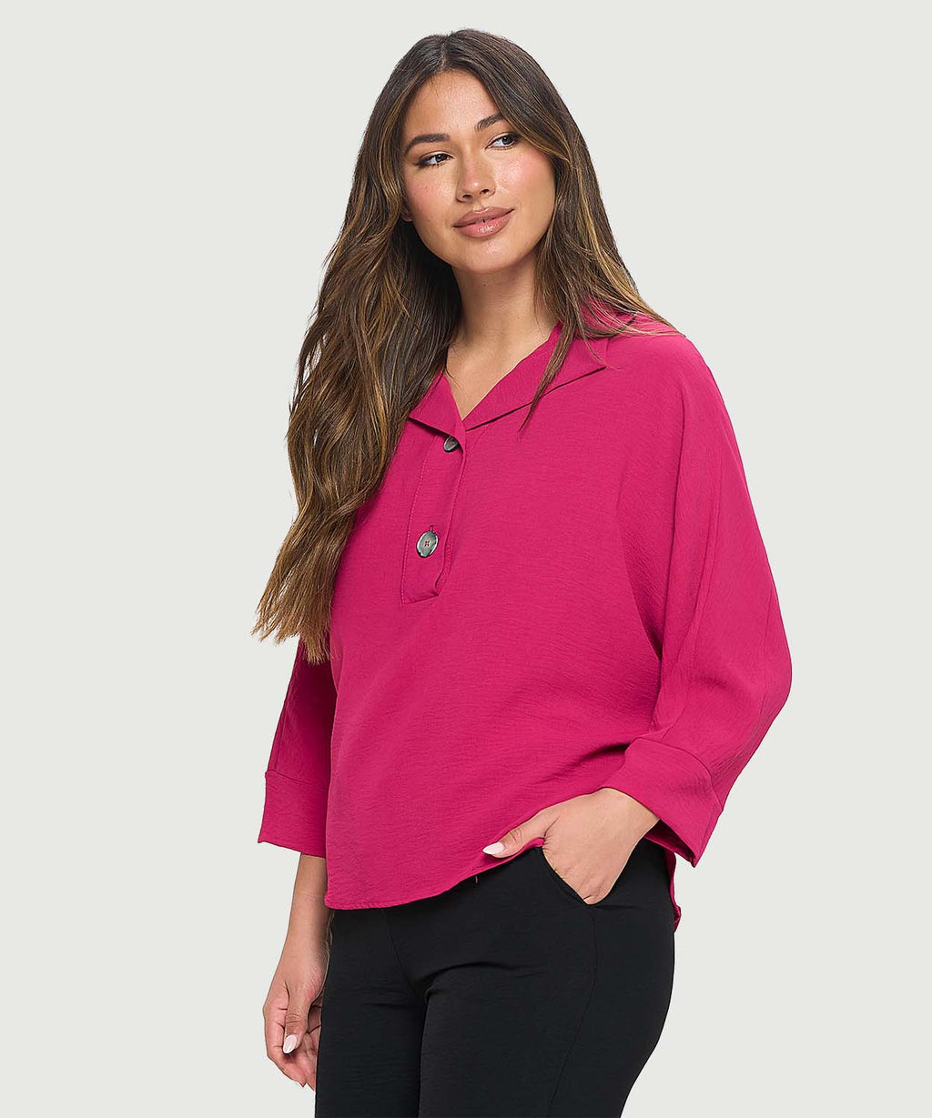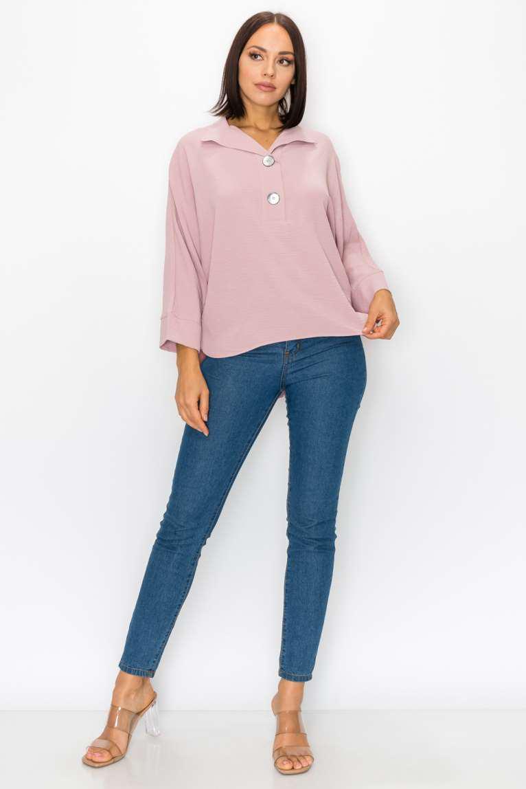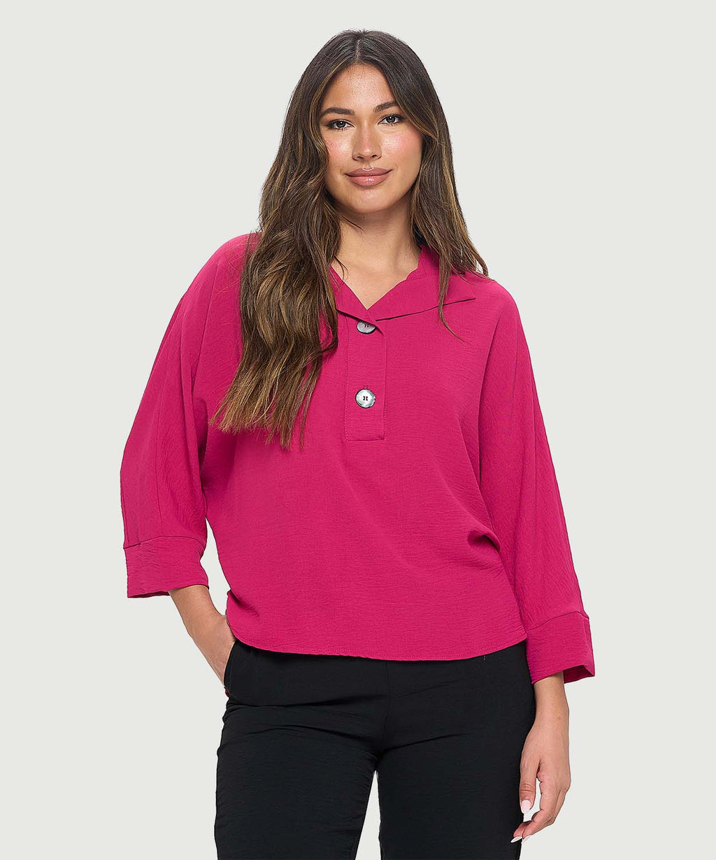 V-NECK PLEATED 3/4 SLEEVE TOP-NAVY-LAST TANGO