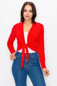 CROP TIE FRONT JACKET-RED-LAST TANGO