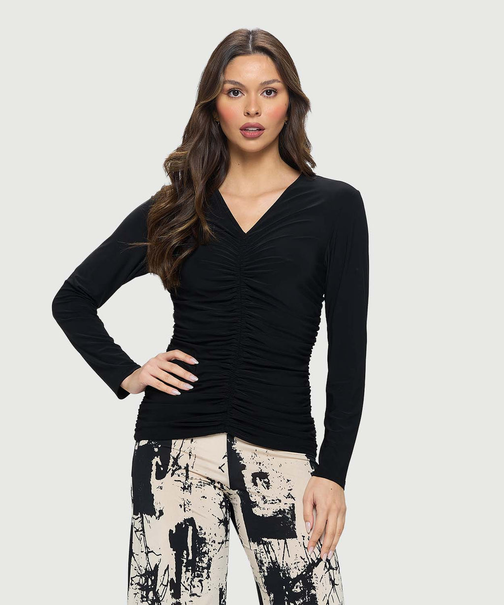RUCHED V-NECK TOP-BLACK-LAST TANGO