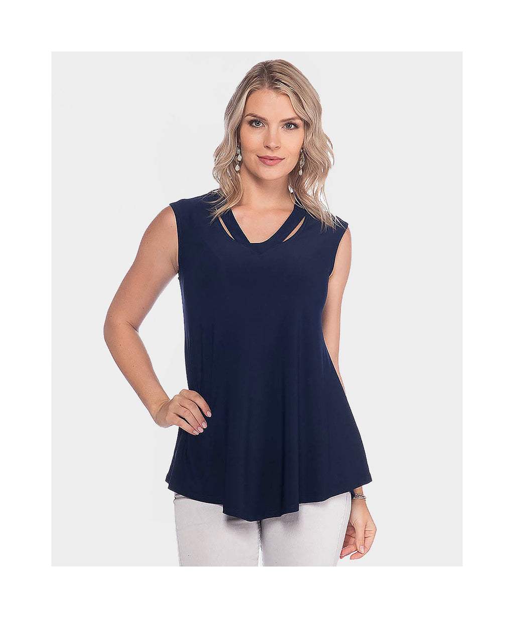 V-NECK TANK W/ NECKLINE CUTOUT DETAIL-NAVY-LAST TANGO