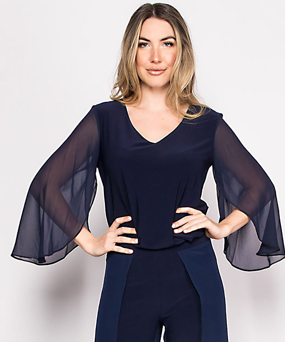 CHIFFON BUTTERFLY SLEEVE BLOUSE-NAVY-LAST TANGO