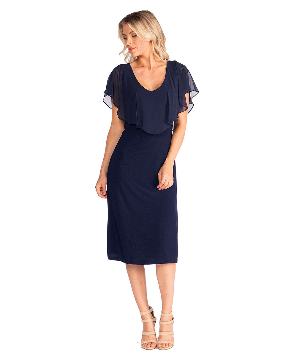 SLEEVELESS CROSSOVER V-NECK DRESS-NAVY-LAST TANGO