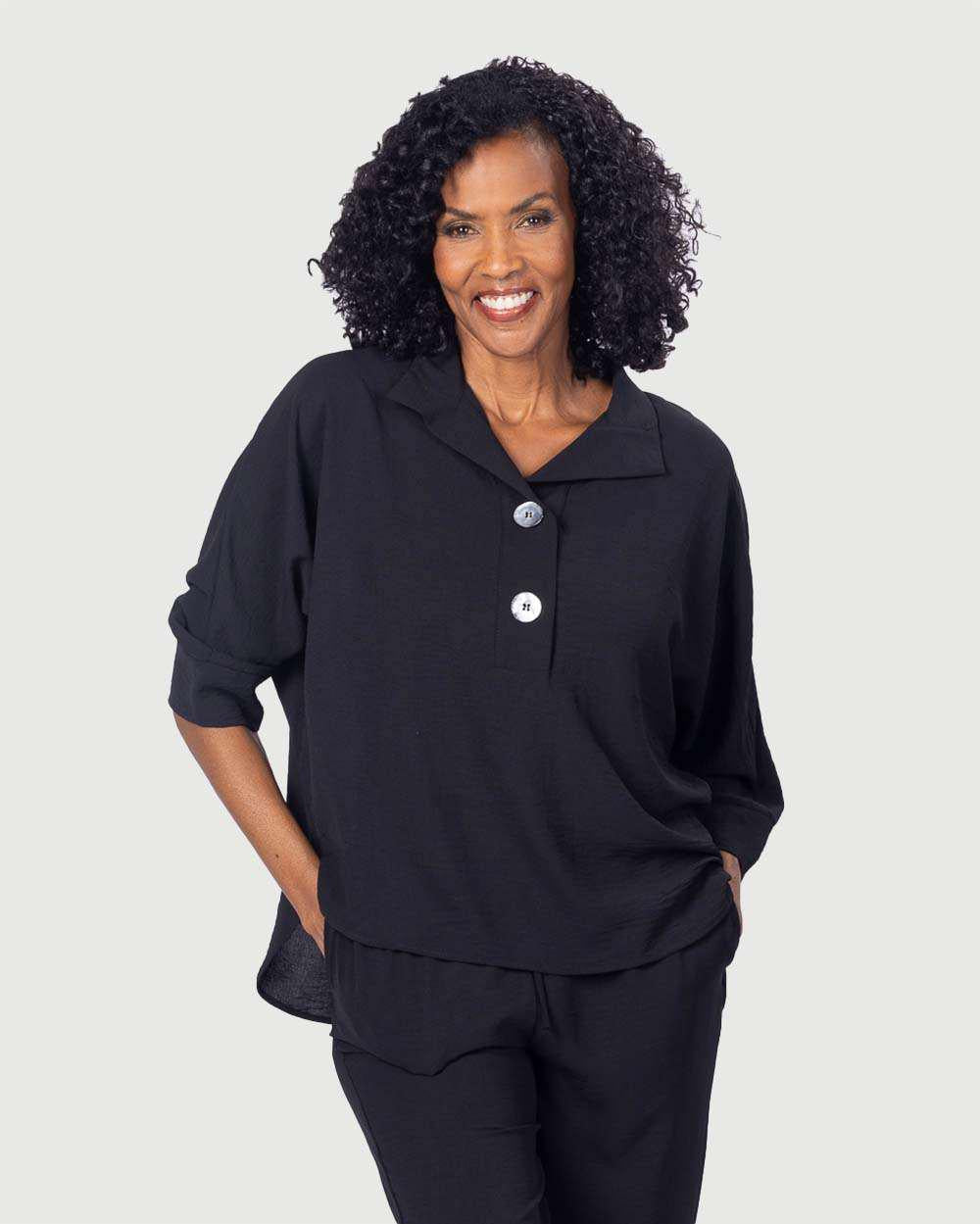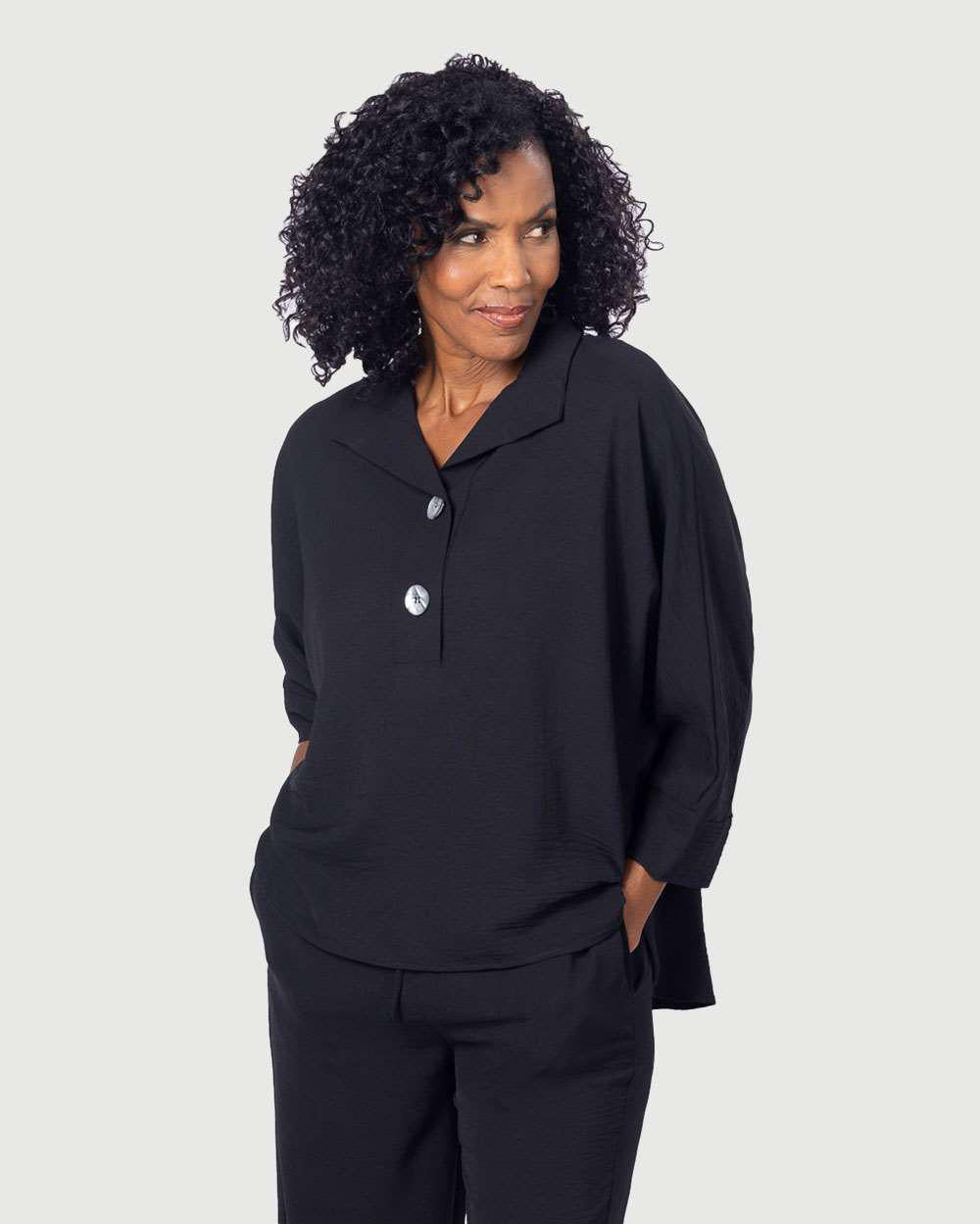 FLOWY V-NECK 3/4 SLV-BLACK-LAST TANGO