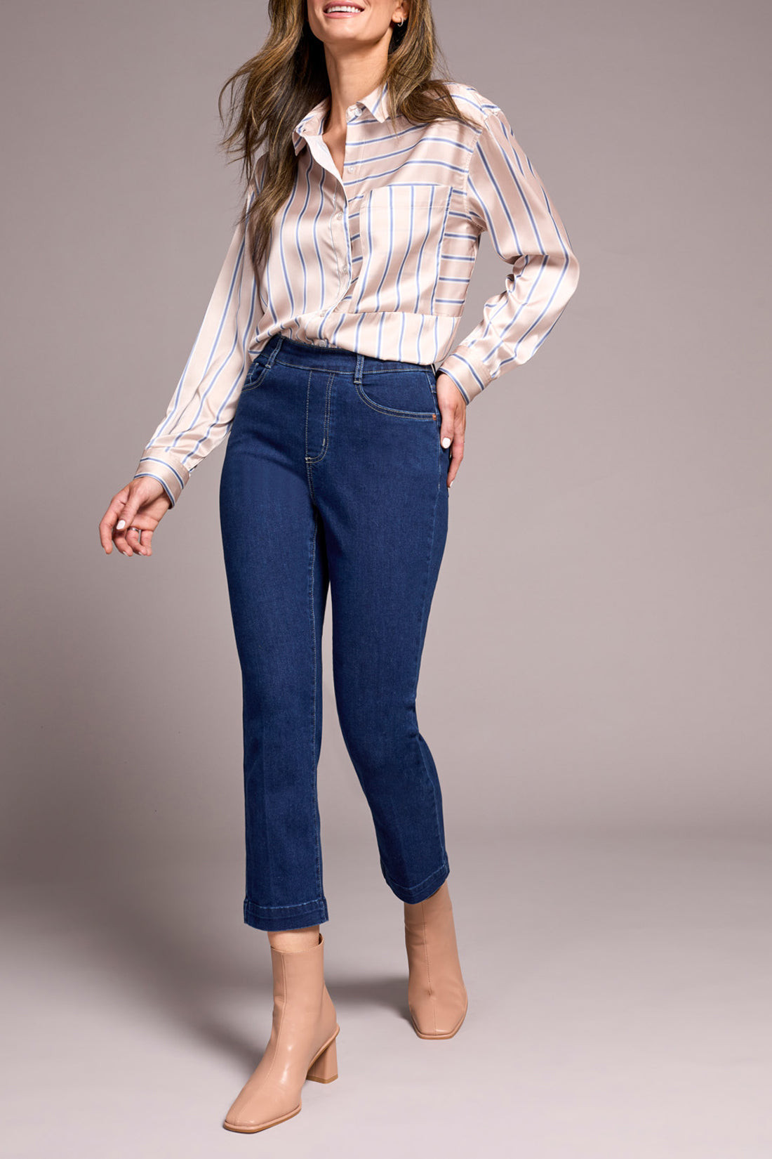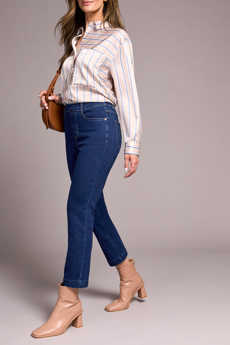 AUDREY PULL-ON CROP JEAN 26"-DEEP WATER-TRIBAL