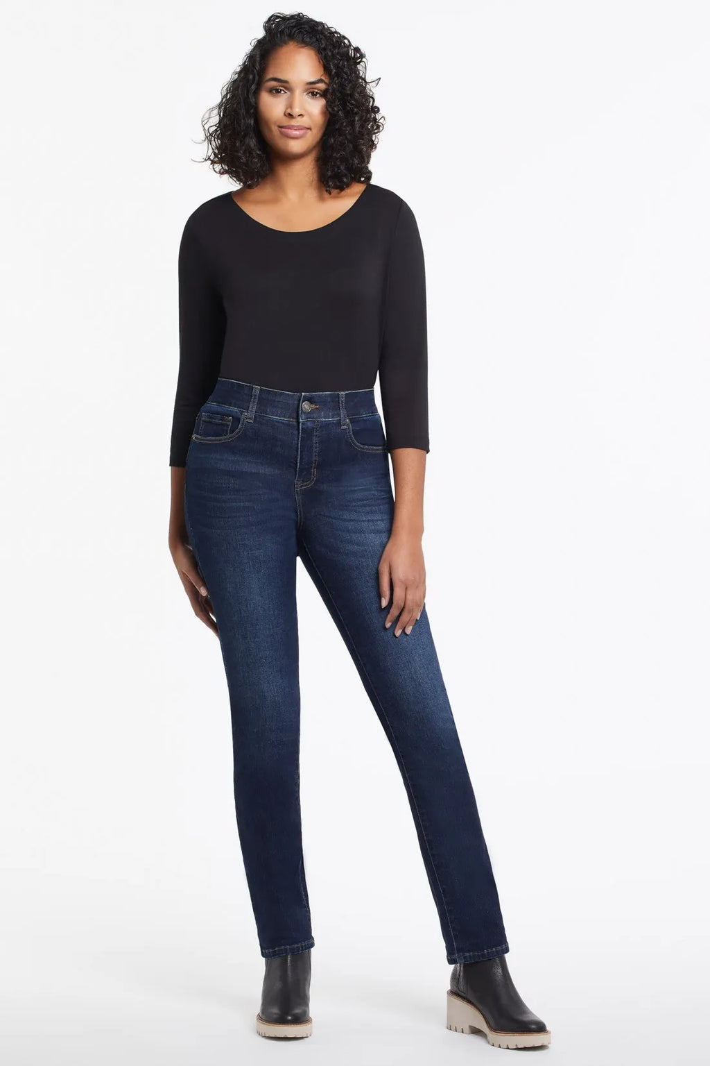 PETITE SOPHIA 5 POCKET CURVY STRAIGHT JEAN-DARK VINTAGE- TRIBAL