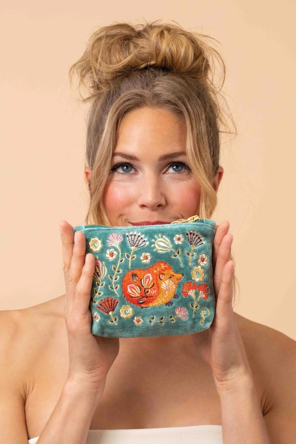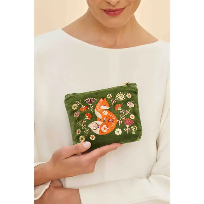 ELEGANT FOX VELVET COIN PURSE-POWDER