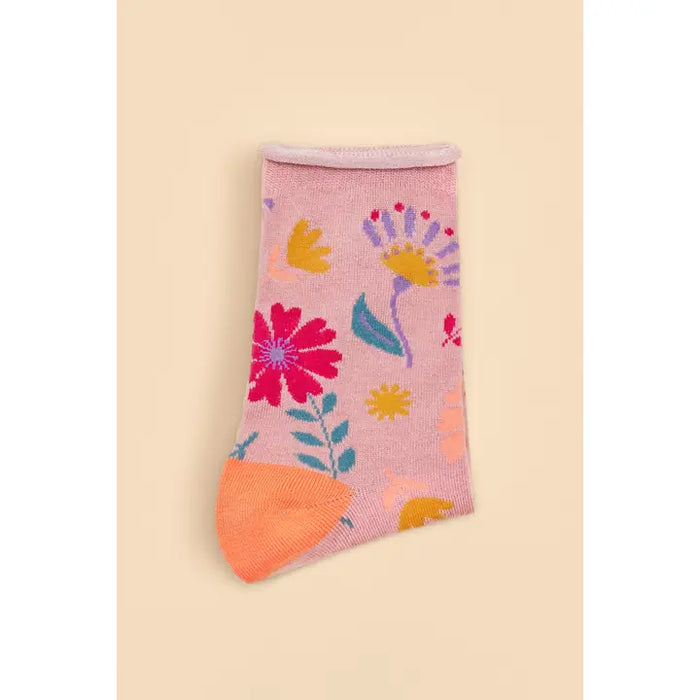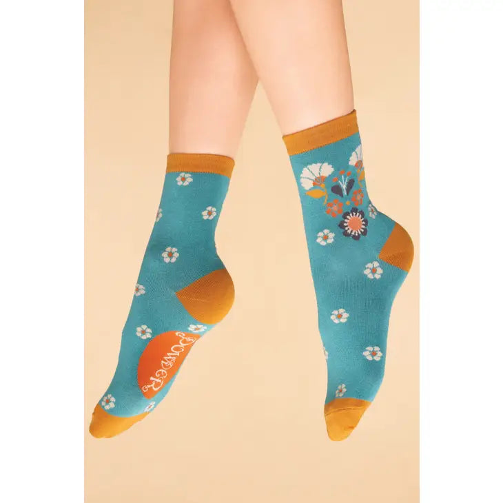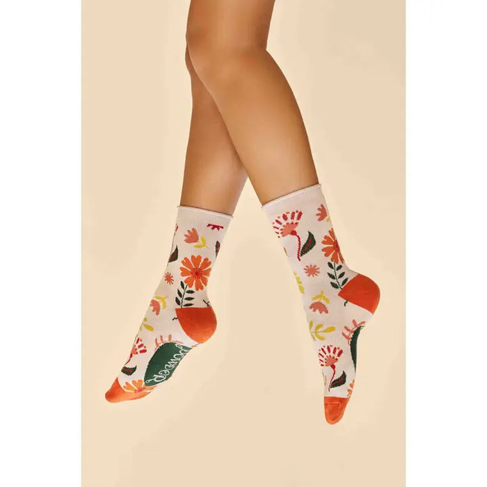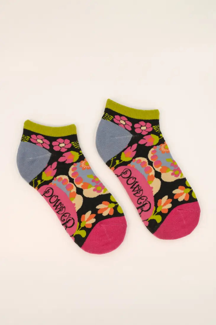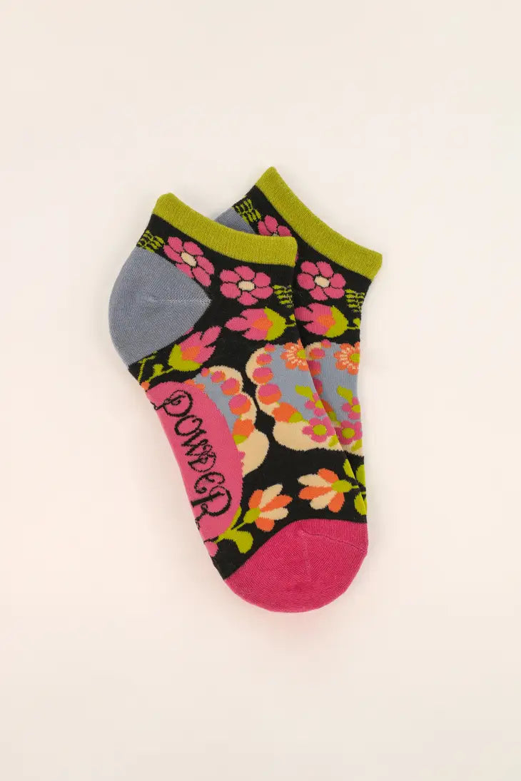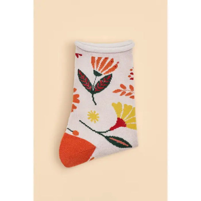FLORAL SPRAY ANKLE SOCKS-ICE-POWDER