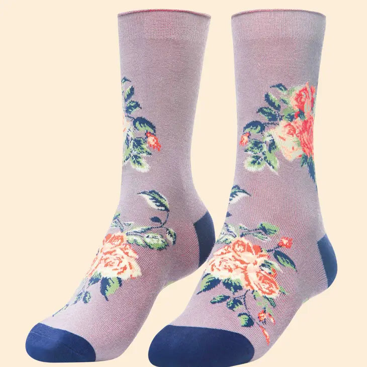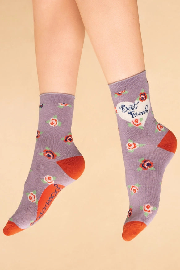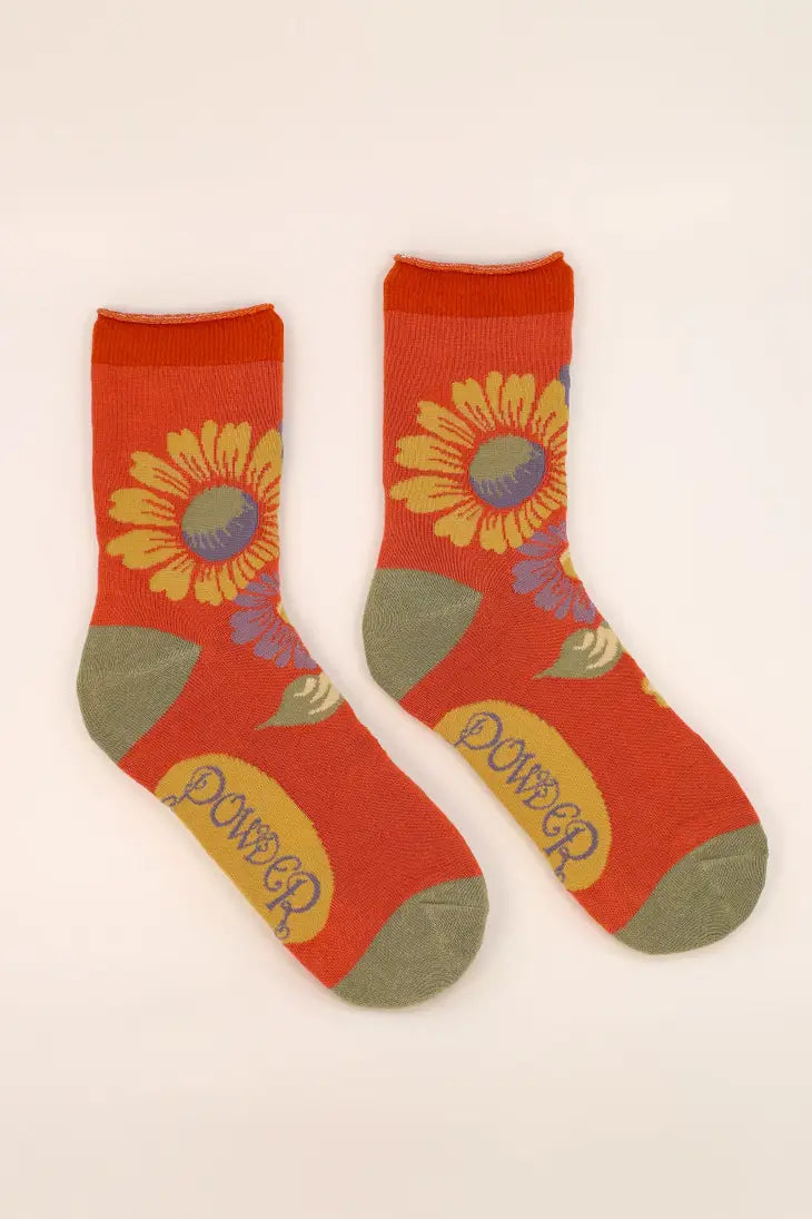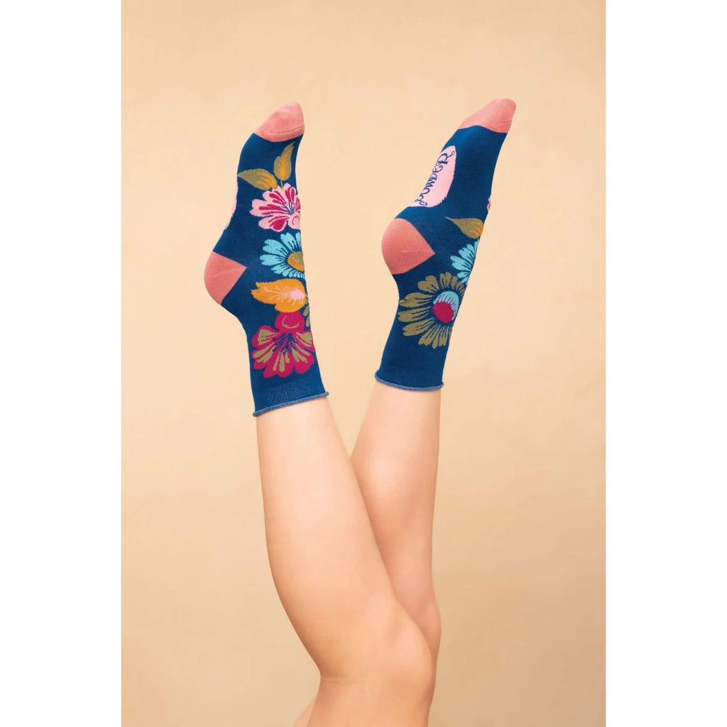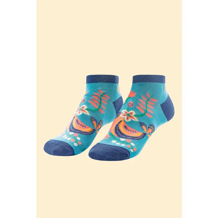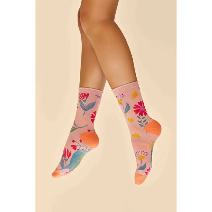 FLORAL SPRAY ANKLE SOCKS-ICE-POWDER