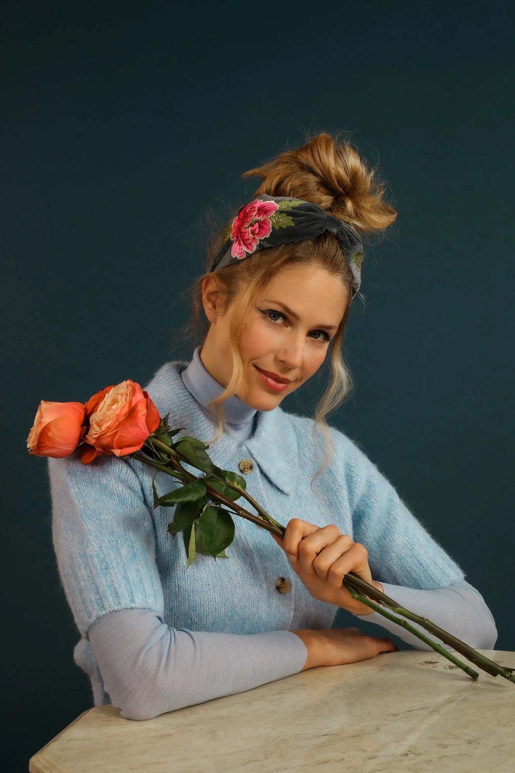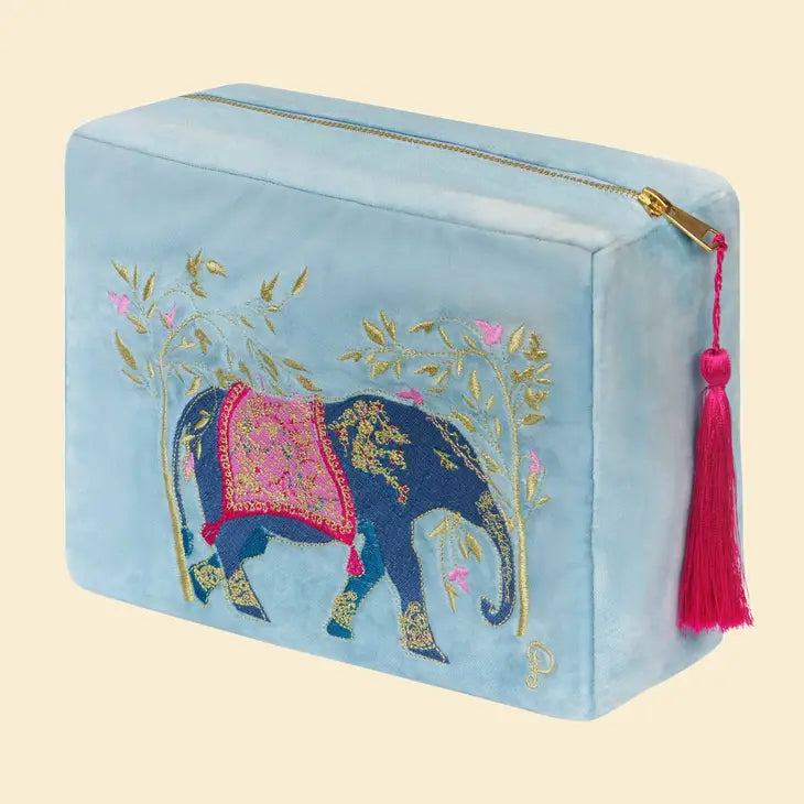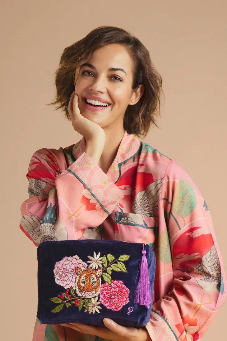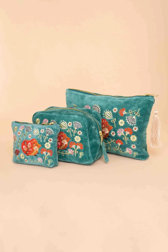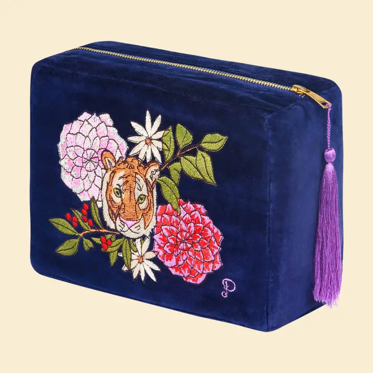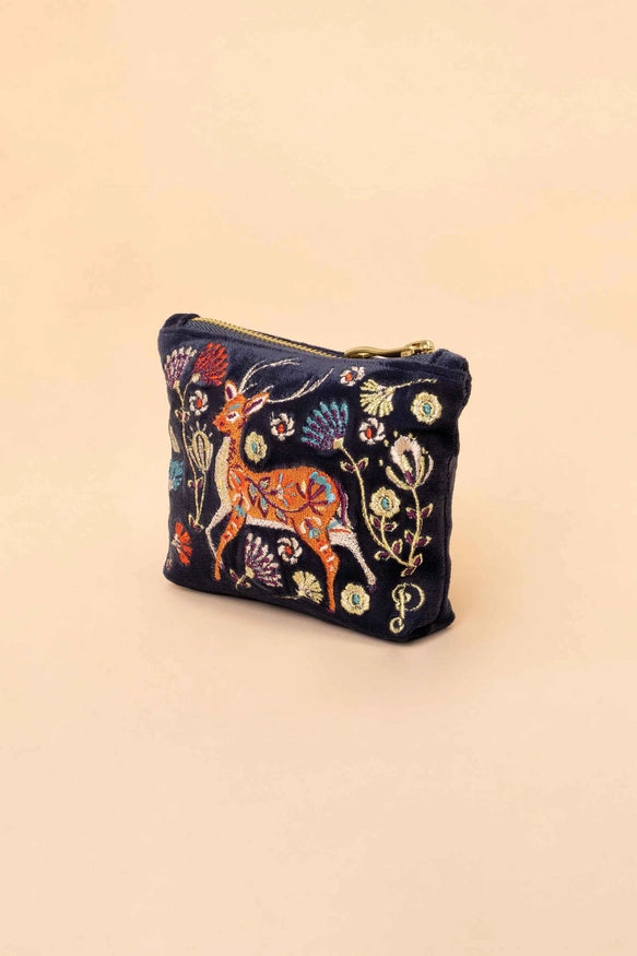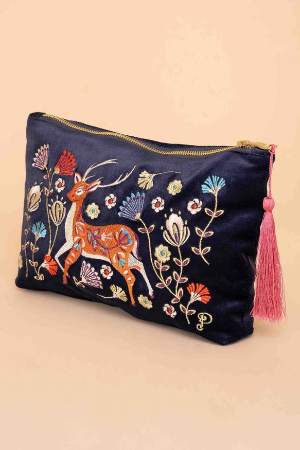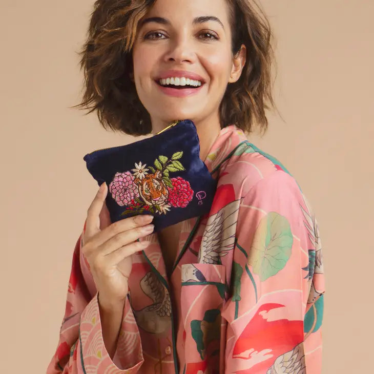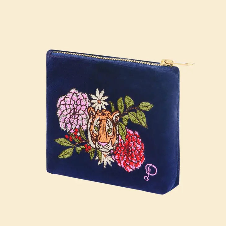 JOLLY JELLIES NAVY EMBROIDERED VELVET POUCH-POWDER