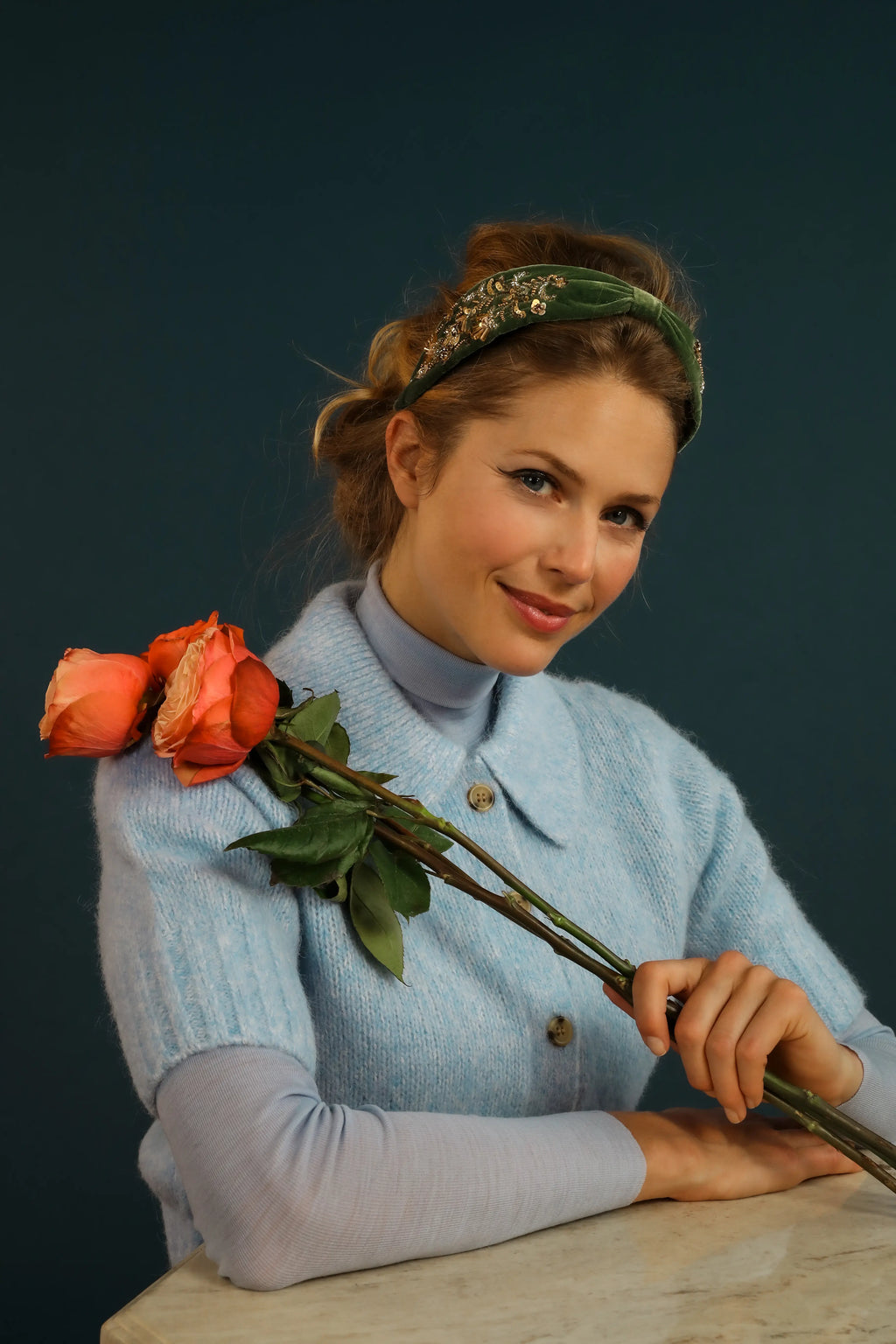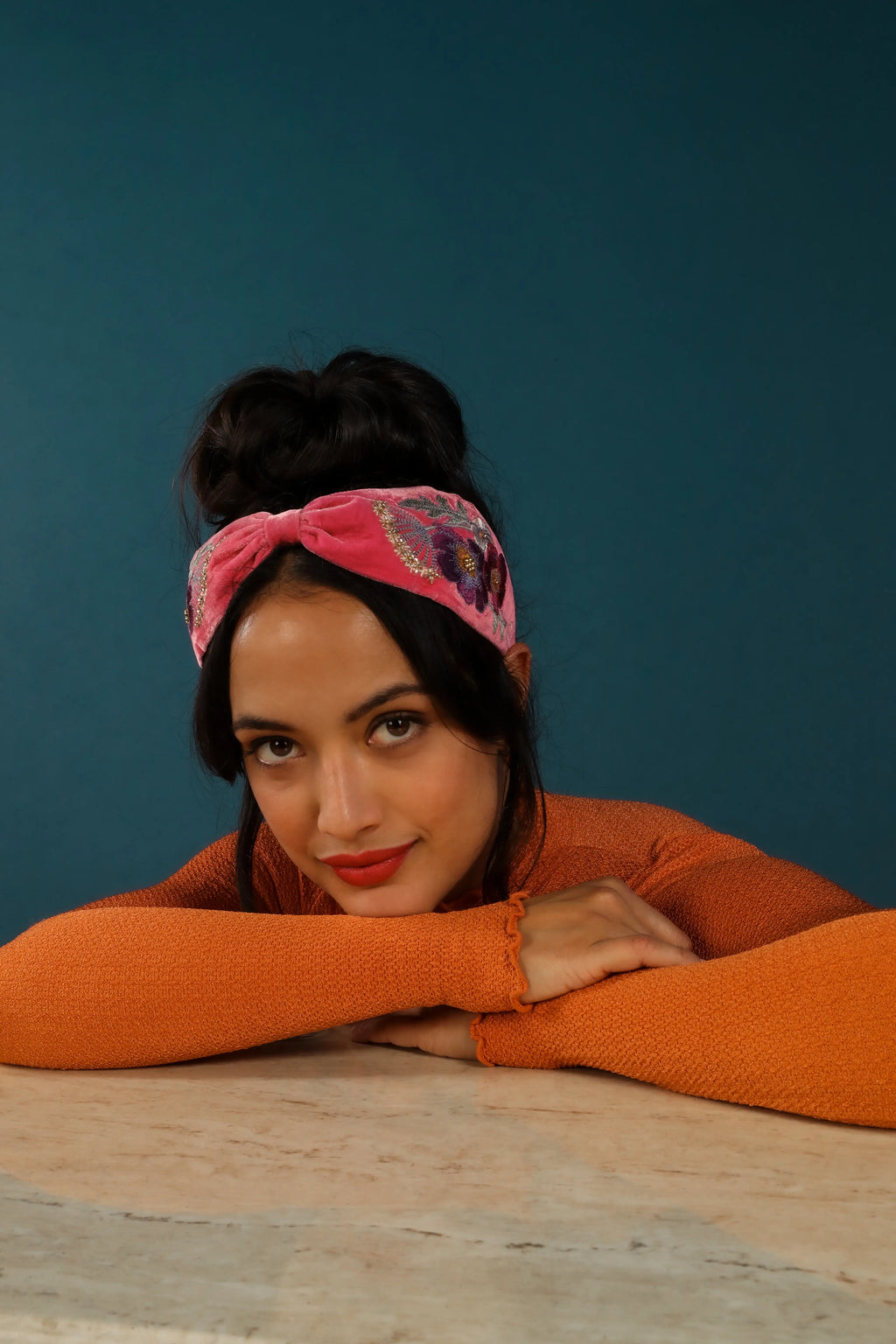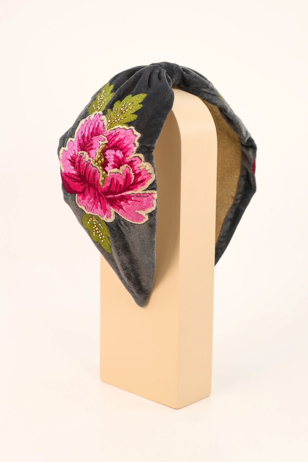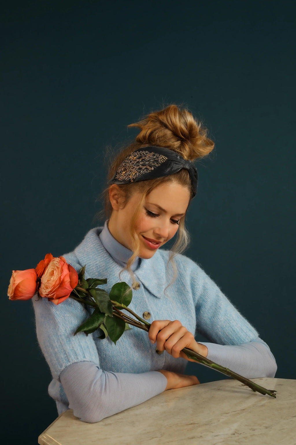 JOLLY JELLIES NAVY EMBROIDERED VELVET POUCH-POWDER