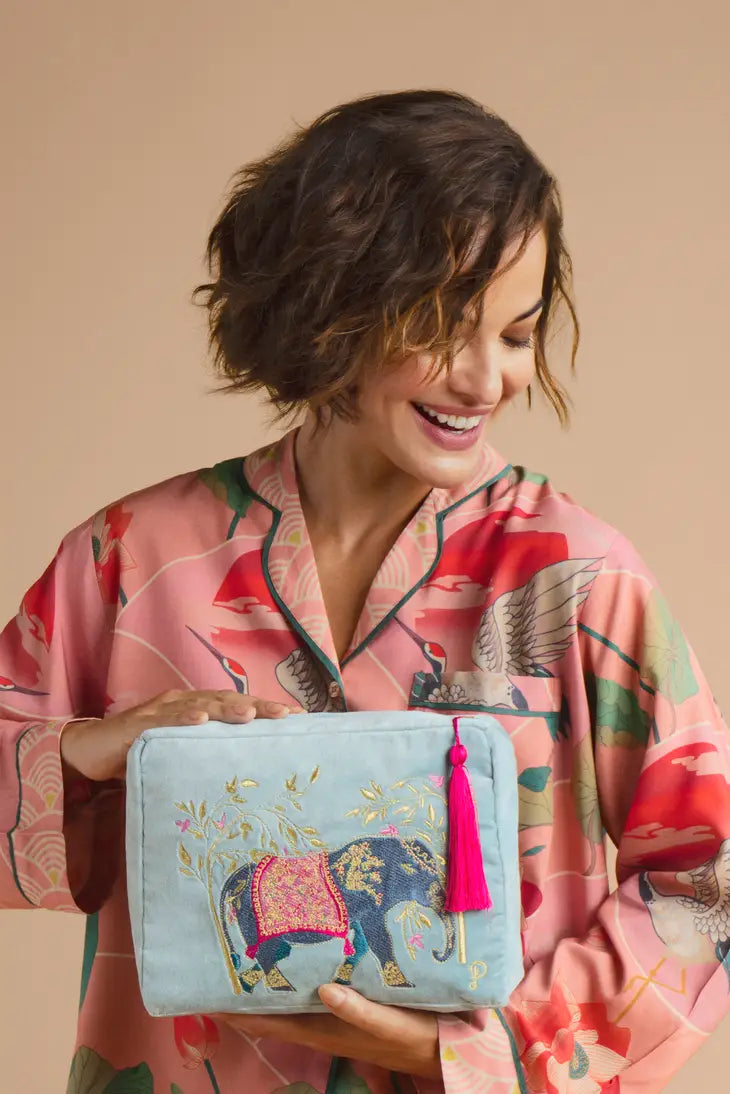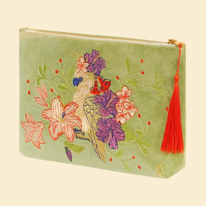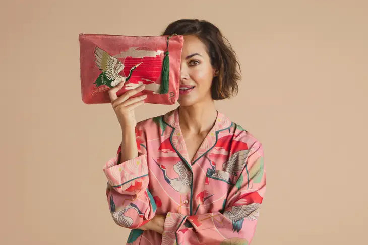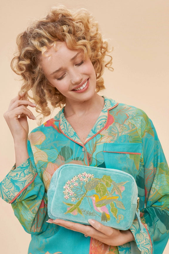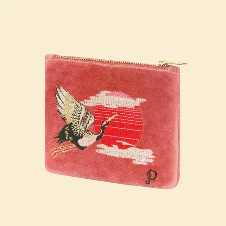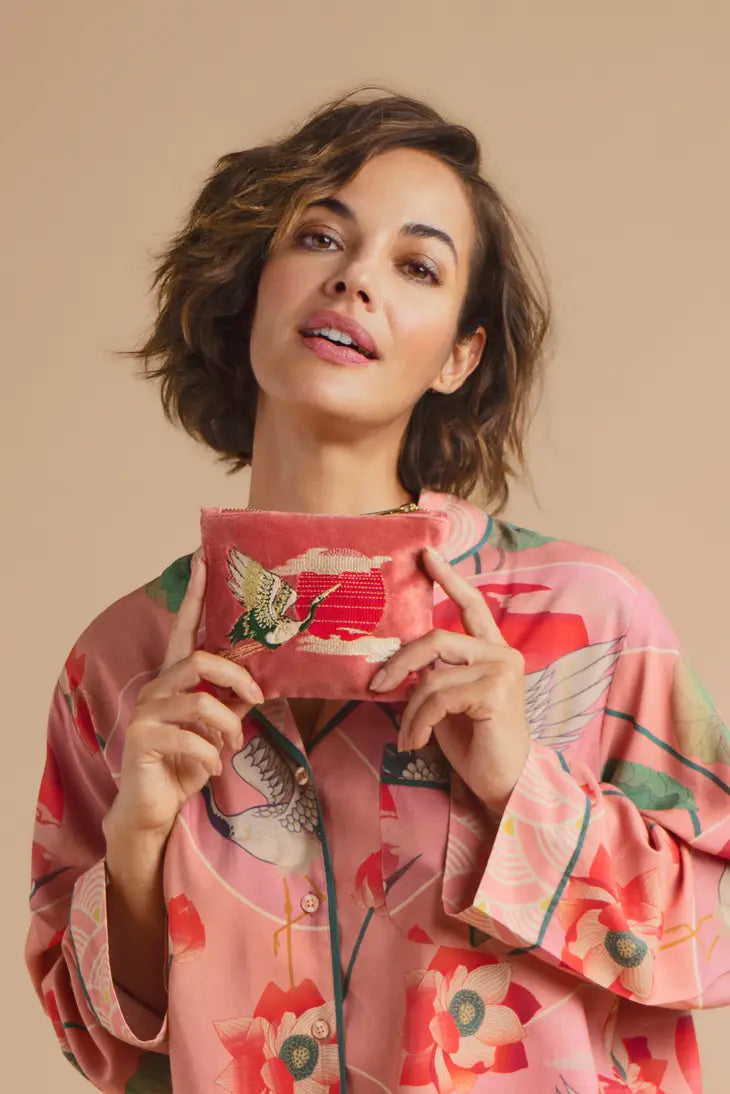 SWOOPING SWALLOWS VELVET ZIP BAG-POWDER