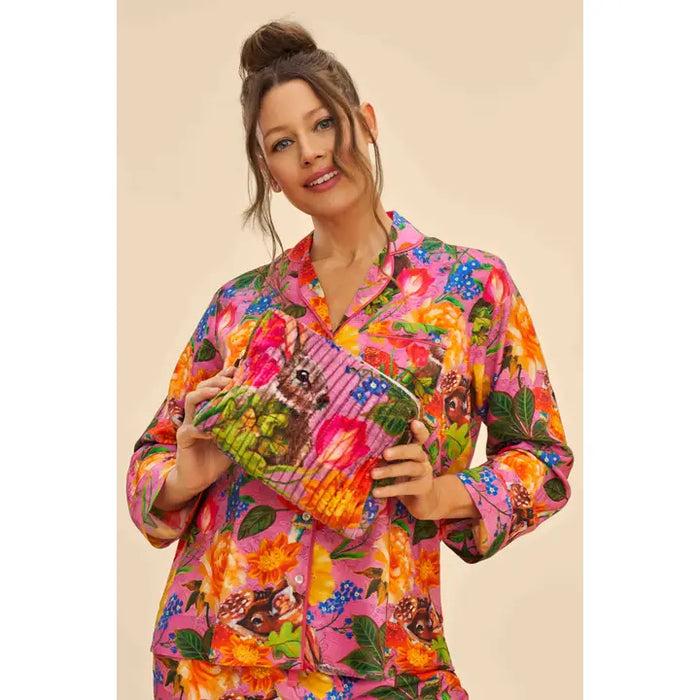 WHIMSICAL WOODLAND SMALL QUILTED VANITY BAG-POWDER