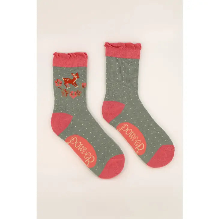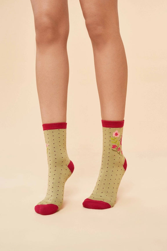 HAPPY LEAVES ANKLE SOCKS-SAGE-POWDER