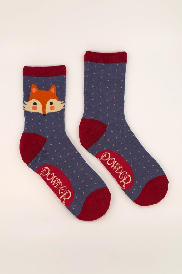 COZY FOX GLITTER ANKLE SOCKS-POWDER