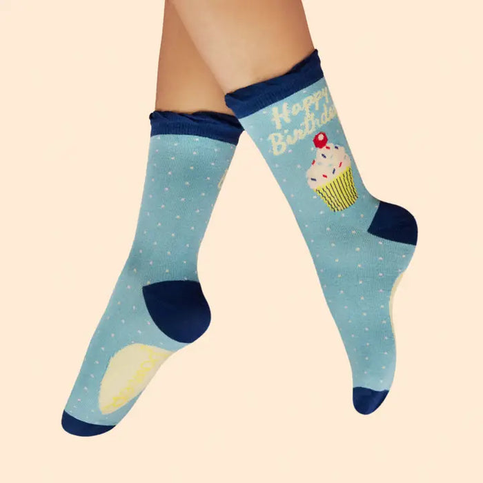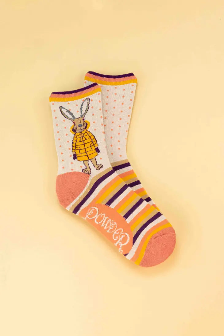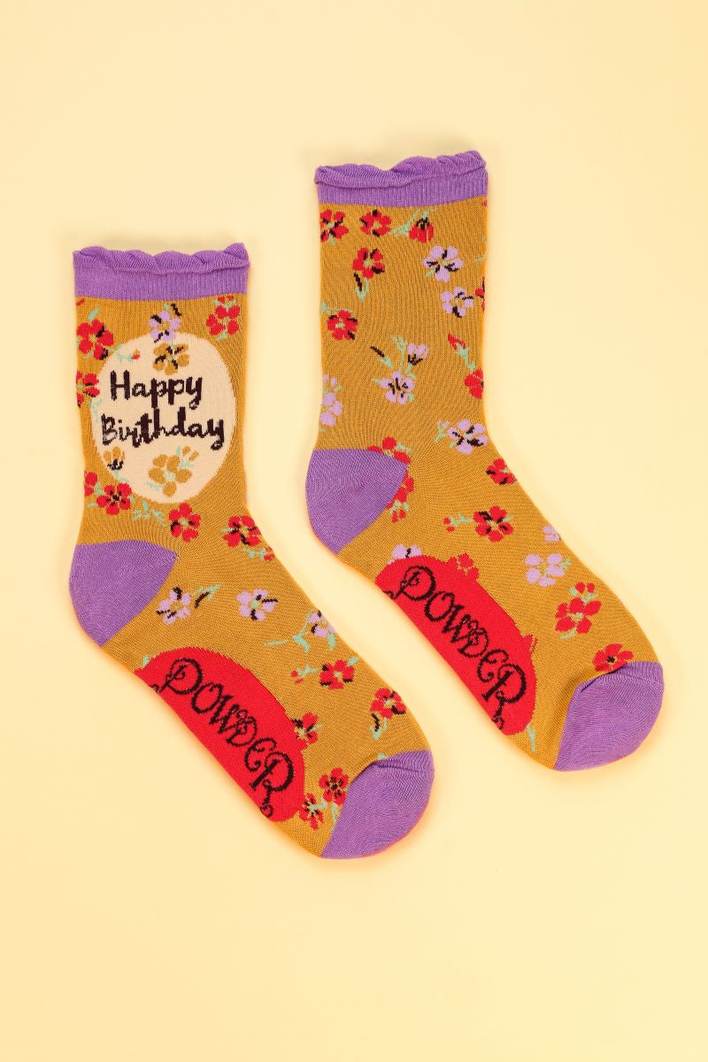 HAPPY BIRTHDAY BUNNY ANKLE SOCKS-POWDER