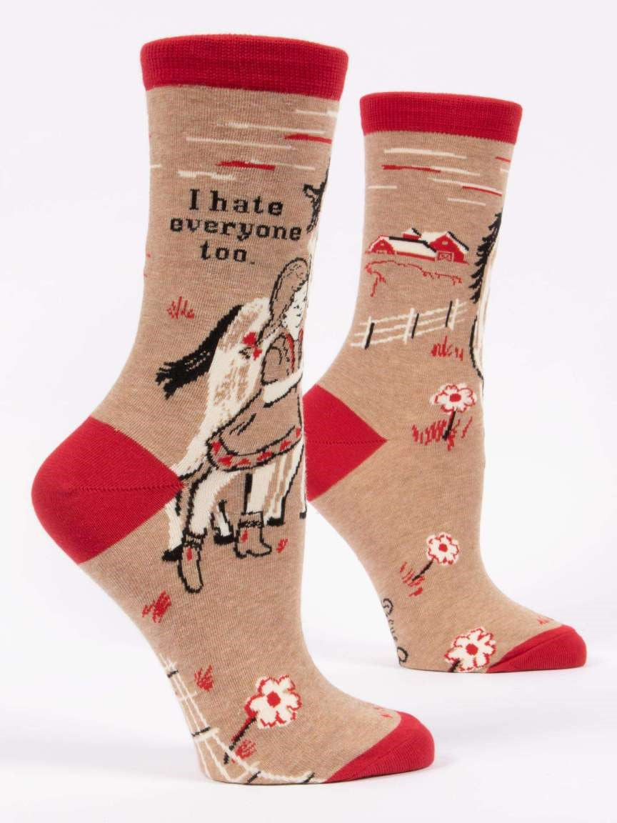 I HATE EVERYONE TOO WOMENS' CREW SOCKS - BLUE Q