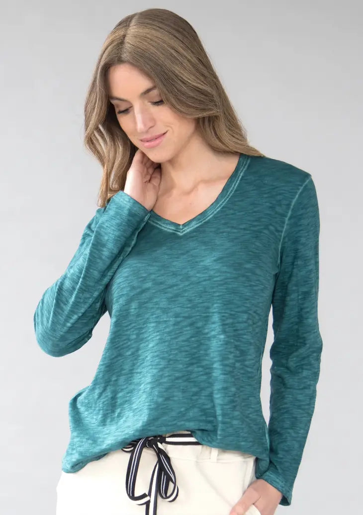 COZY LONG SLEEVE TOP COMFORT COLLECTION-HEATHER DENIM-LA CERA