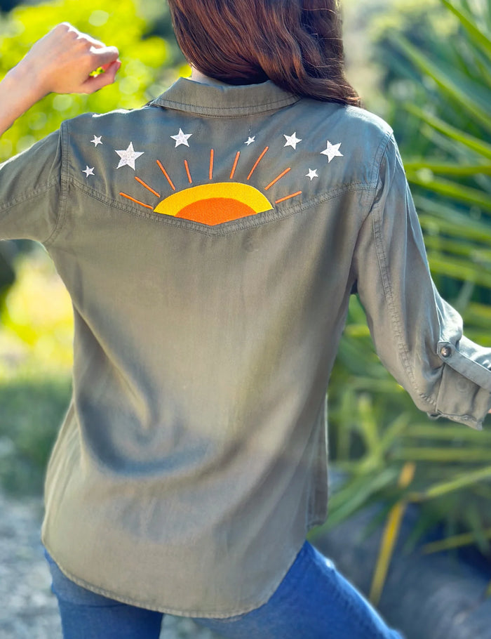 HELLO SUNSHINE EMBROIDERED SHIRT-SOFT OLIVE-BILLY T