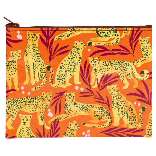 CHEETAH ZIPPER POUCH - BLUE Q